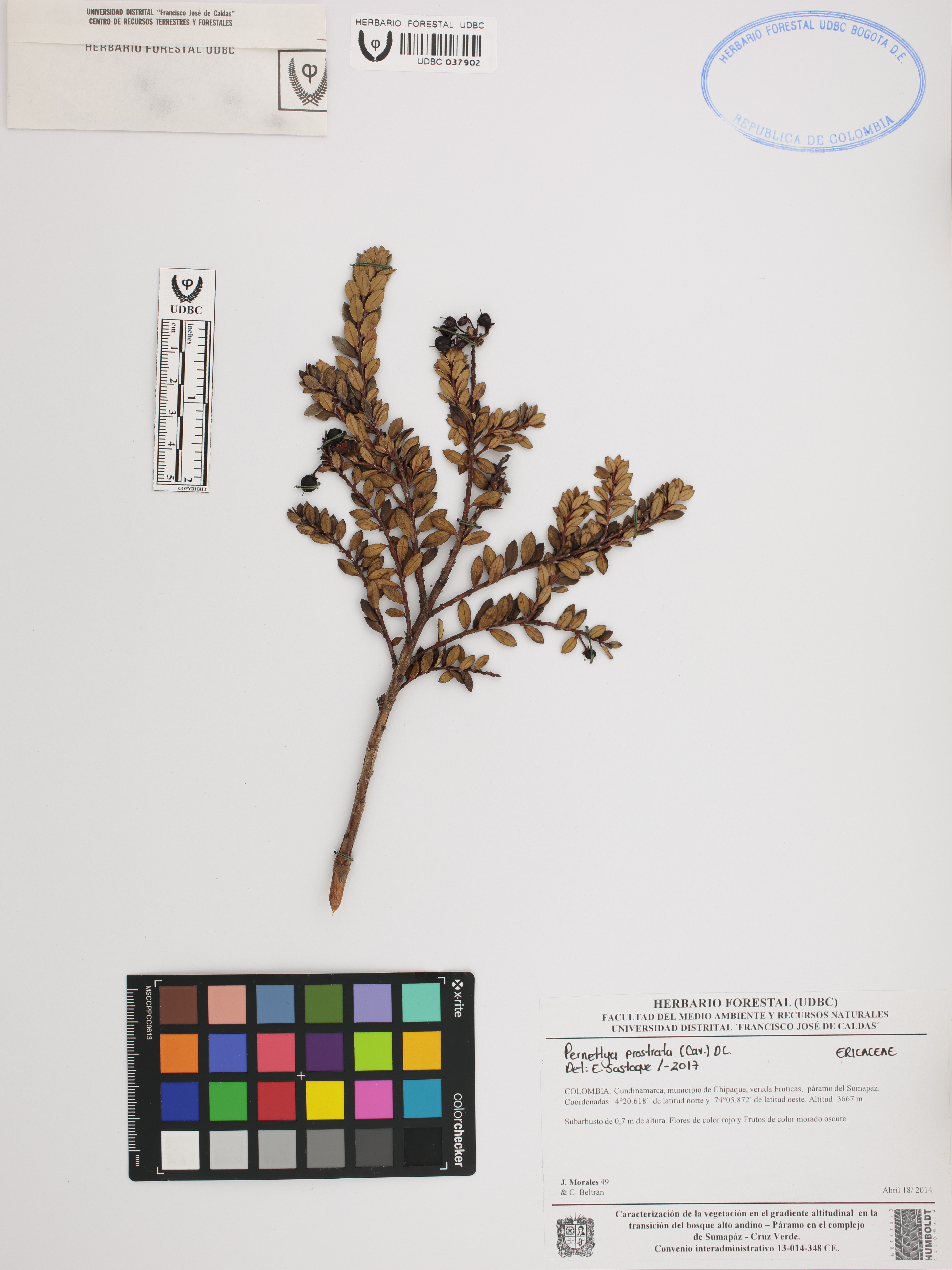 Fotografía del ejemplar Morales, J. 49, determinado como Pernettya prostrata en el año 2017