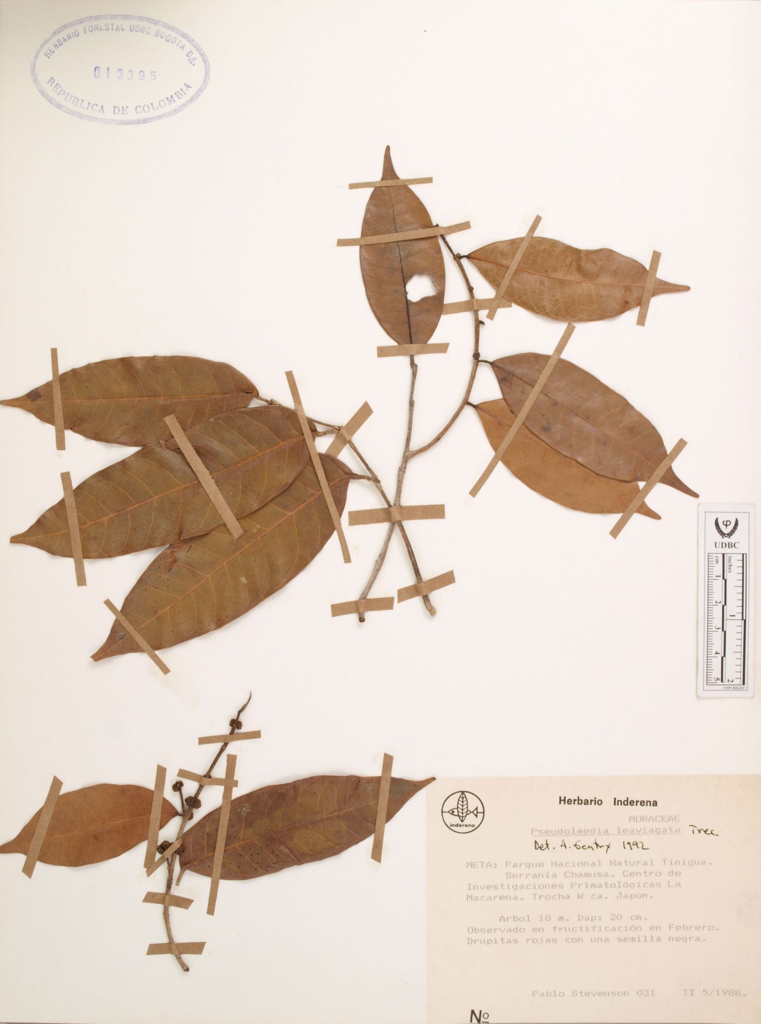 Fotografía del ejemplar Stevenson, P. 31, determinado como Pseudolmedia laevigata en el año 1992