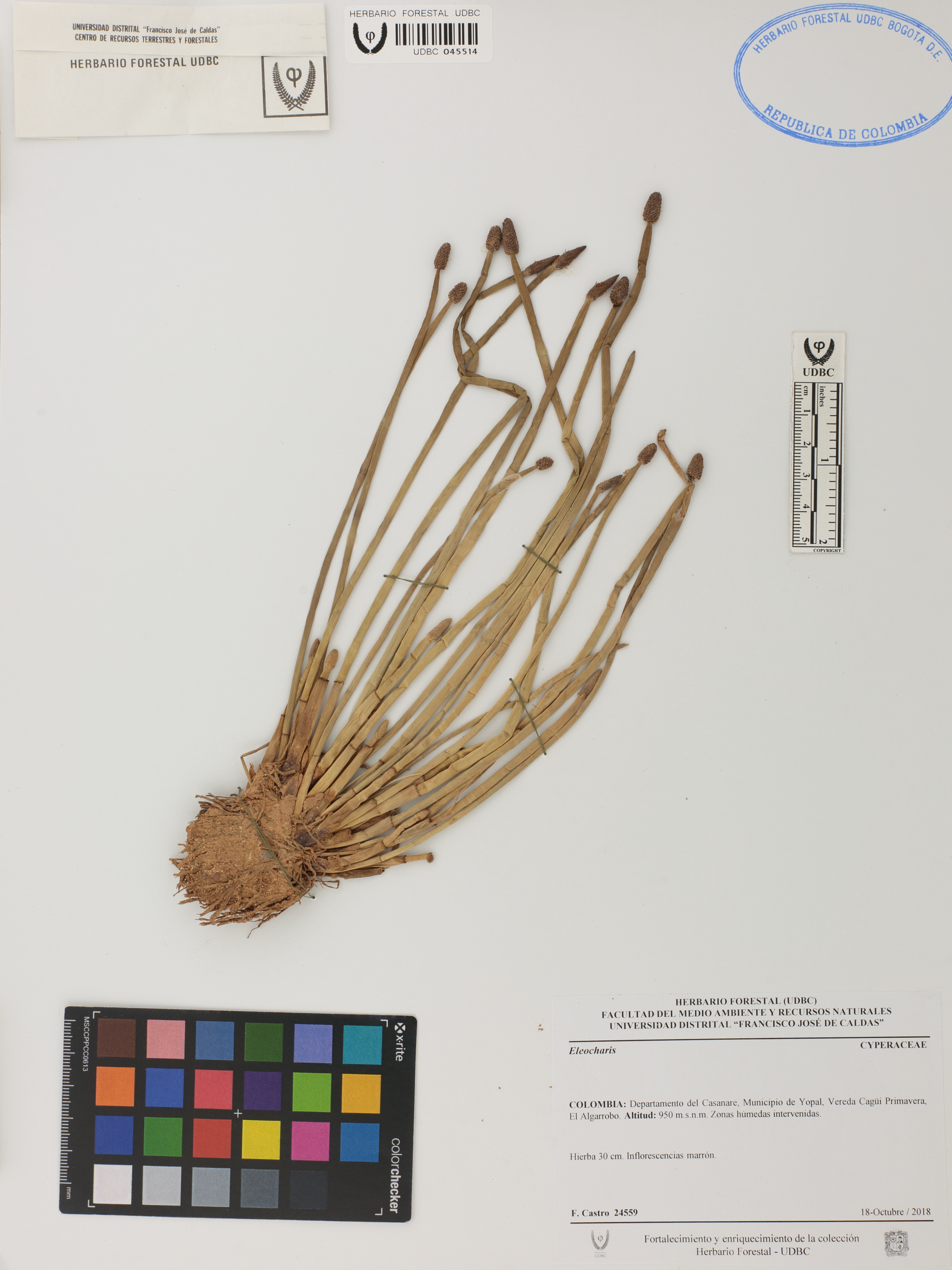 Fotografía del ejemplar Castro, F. 24559, determinado como Eleocharis sp.
