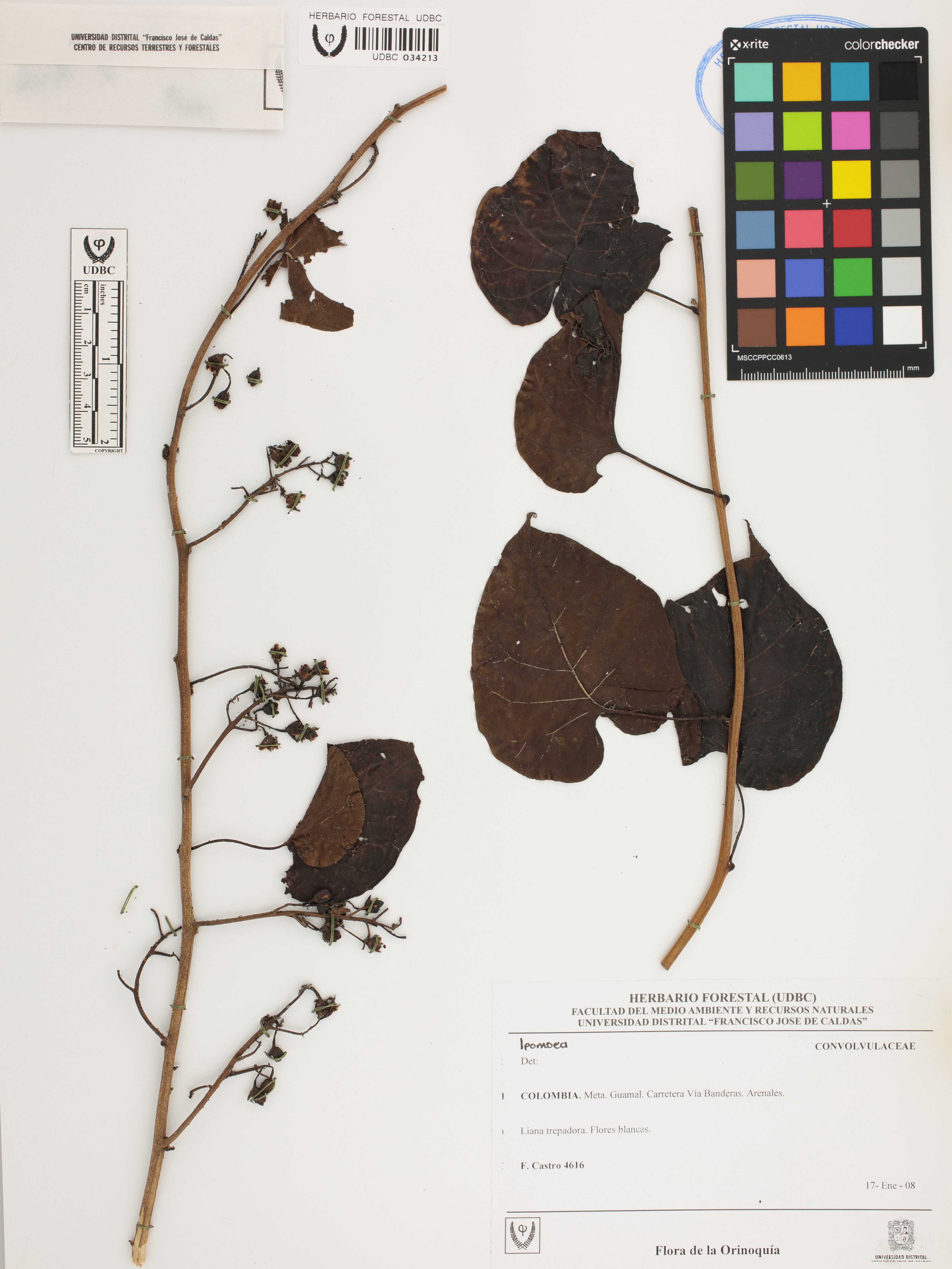 Fotografía del ejemplar Castro, F. 4616, determinado como Ipomoea sp.