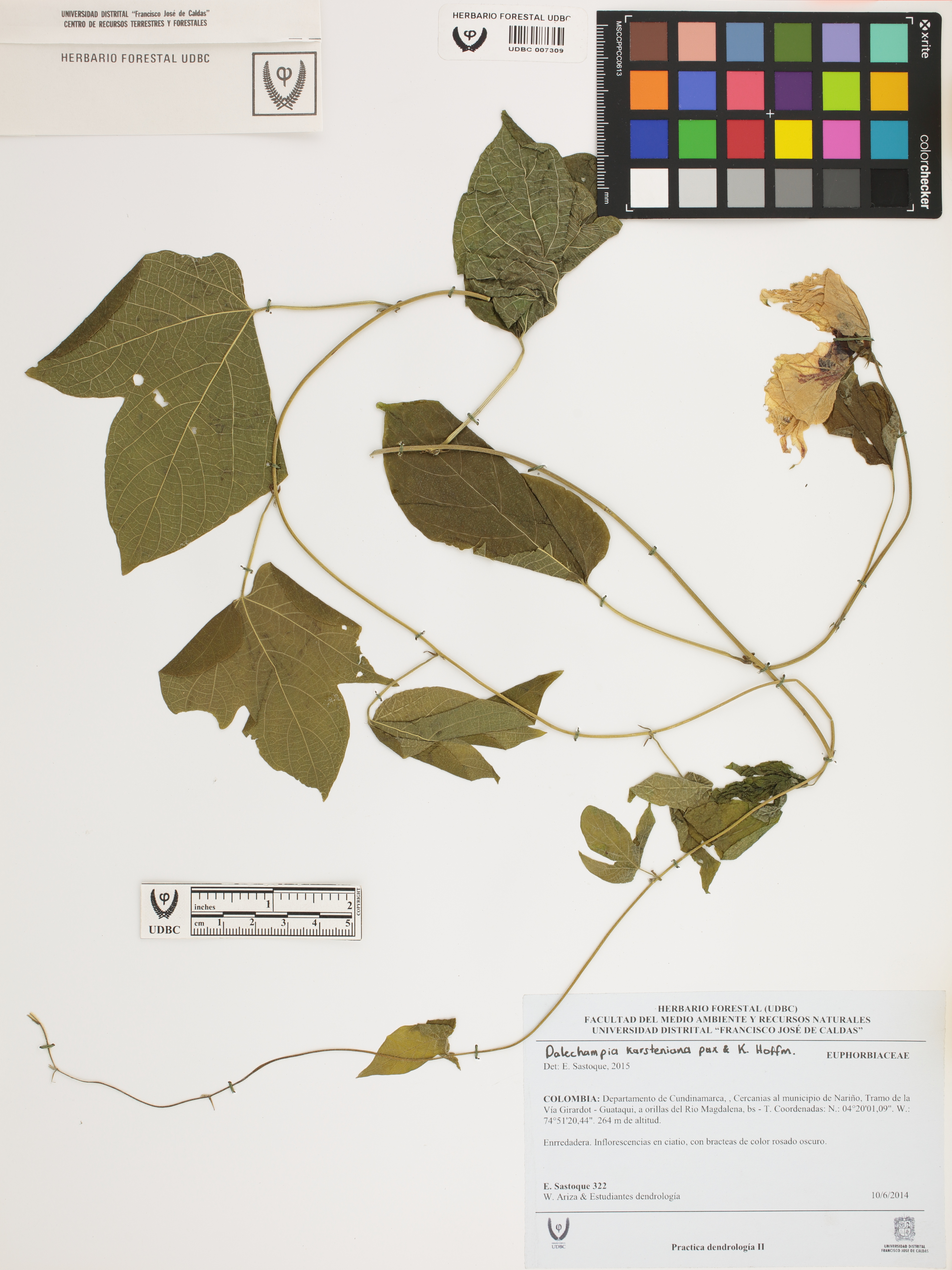 Fotografía del ejemplar Sastoque, E. 322, determinado como Dalechampia karsteniana en el año 2015