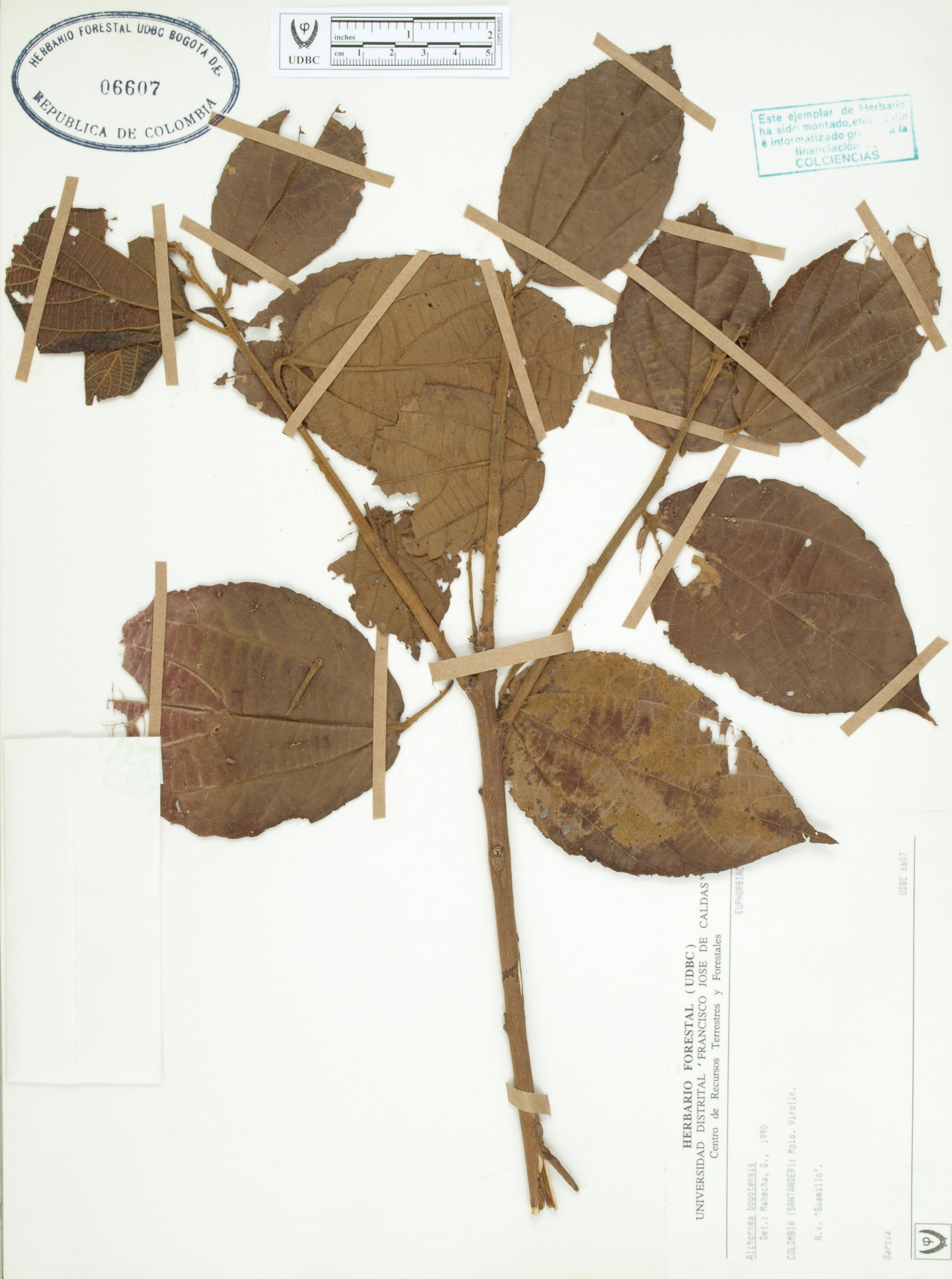 Fotografía del ejemplar García, A., determinado como Alchornea bogotensis