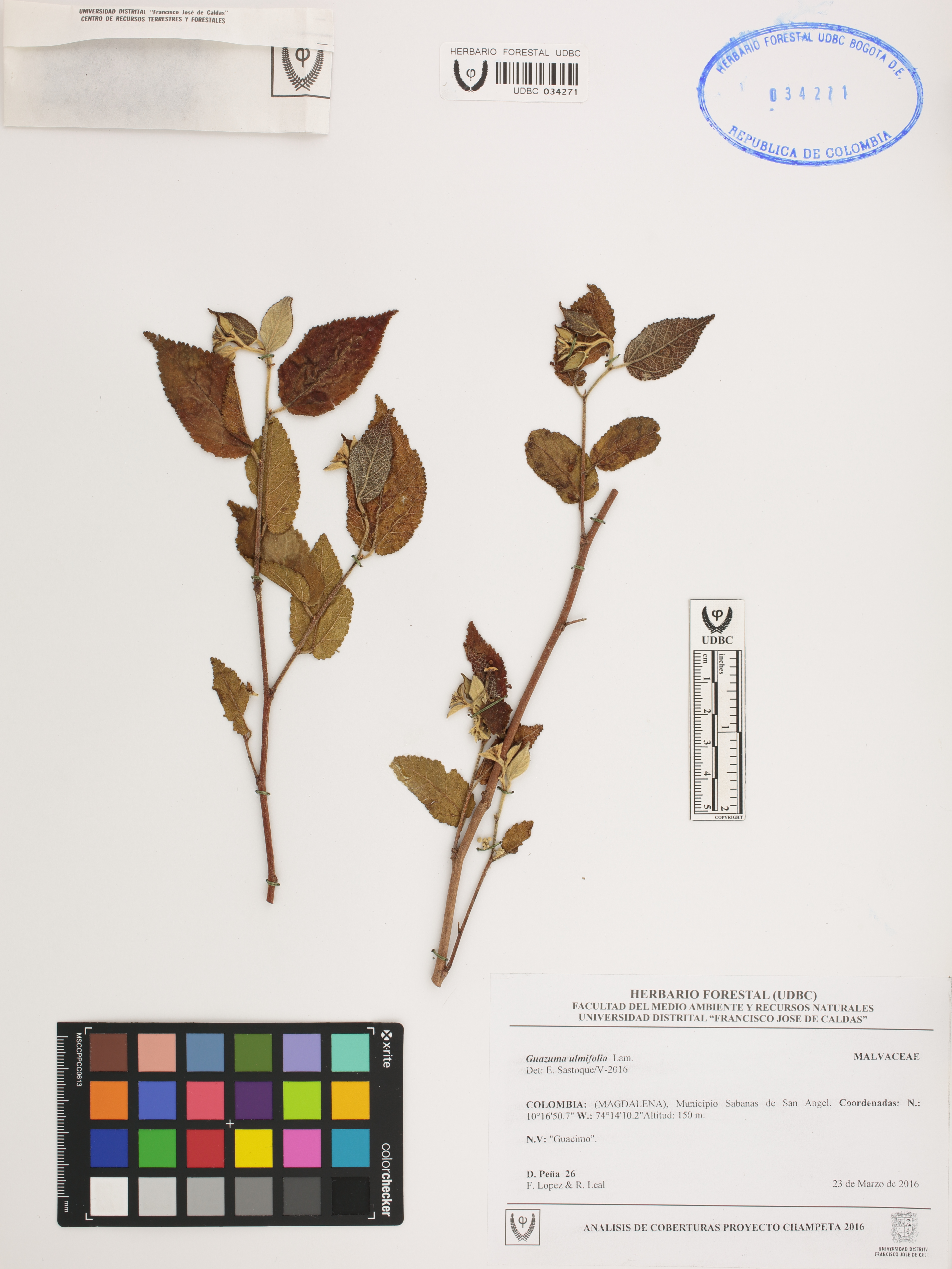 Fotografía del ejemplar Peña, D. 26, determinado como Guazuma ulmifolia en el año 2016