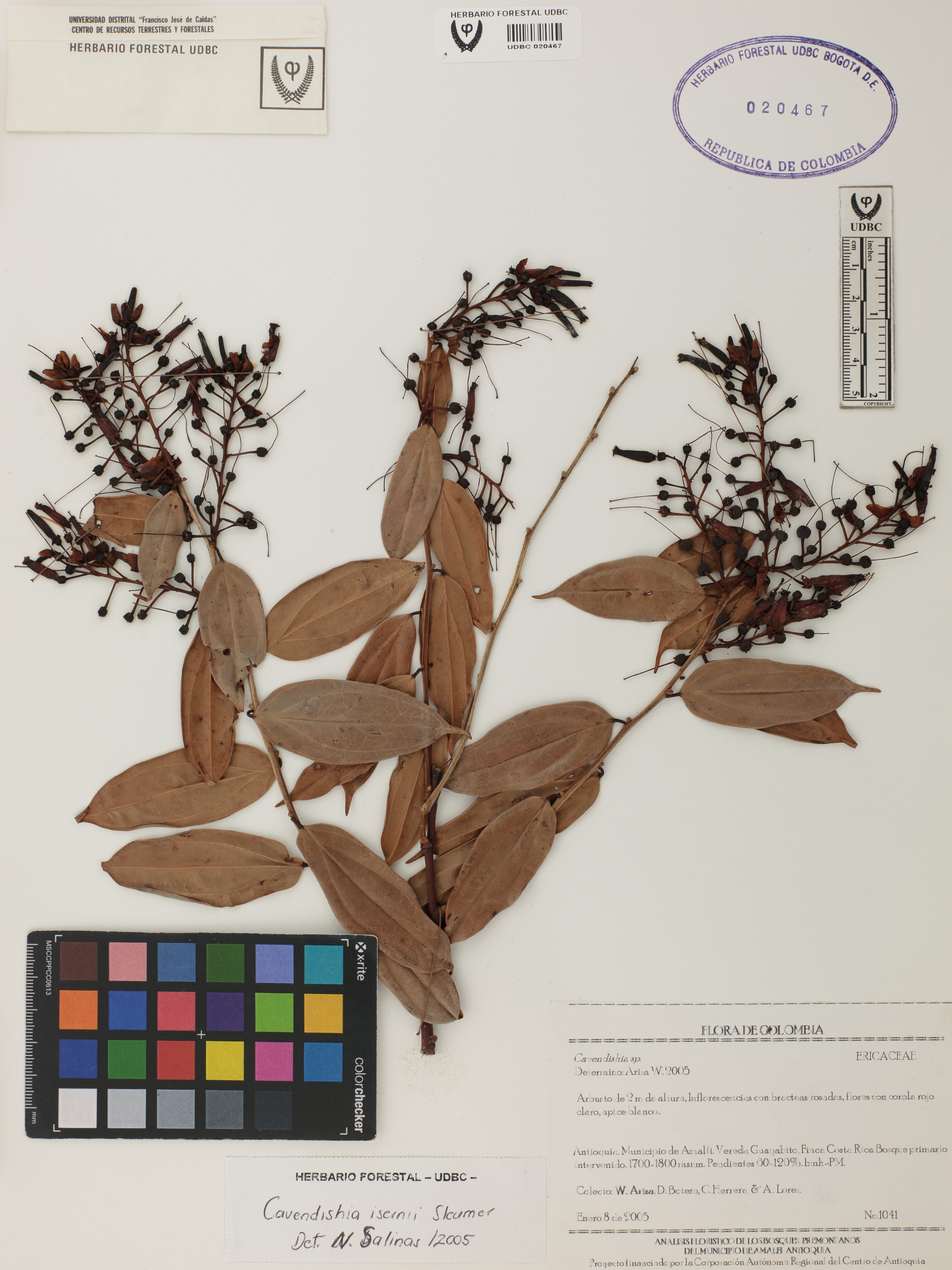 Fotografía del ejemplar Ariza, W. 1041, determinado como Cavendishia isernii en el año 2005