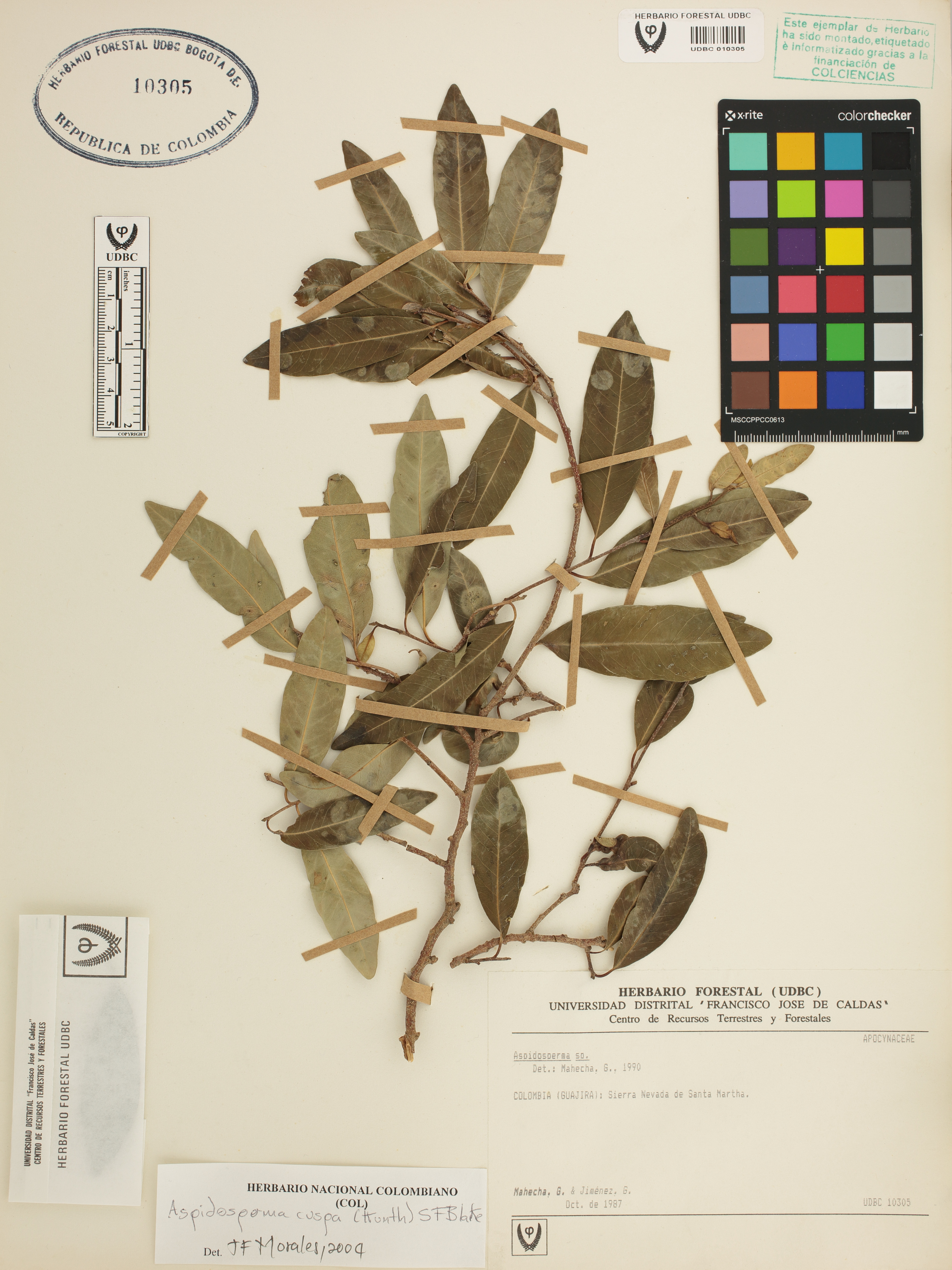 Fotografía del ejemplar Mahecha, G., determinado como Aspidosperma cuspa en el año 2004