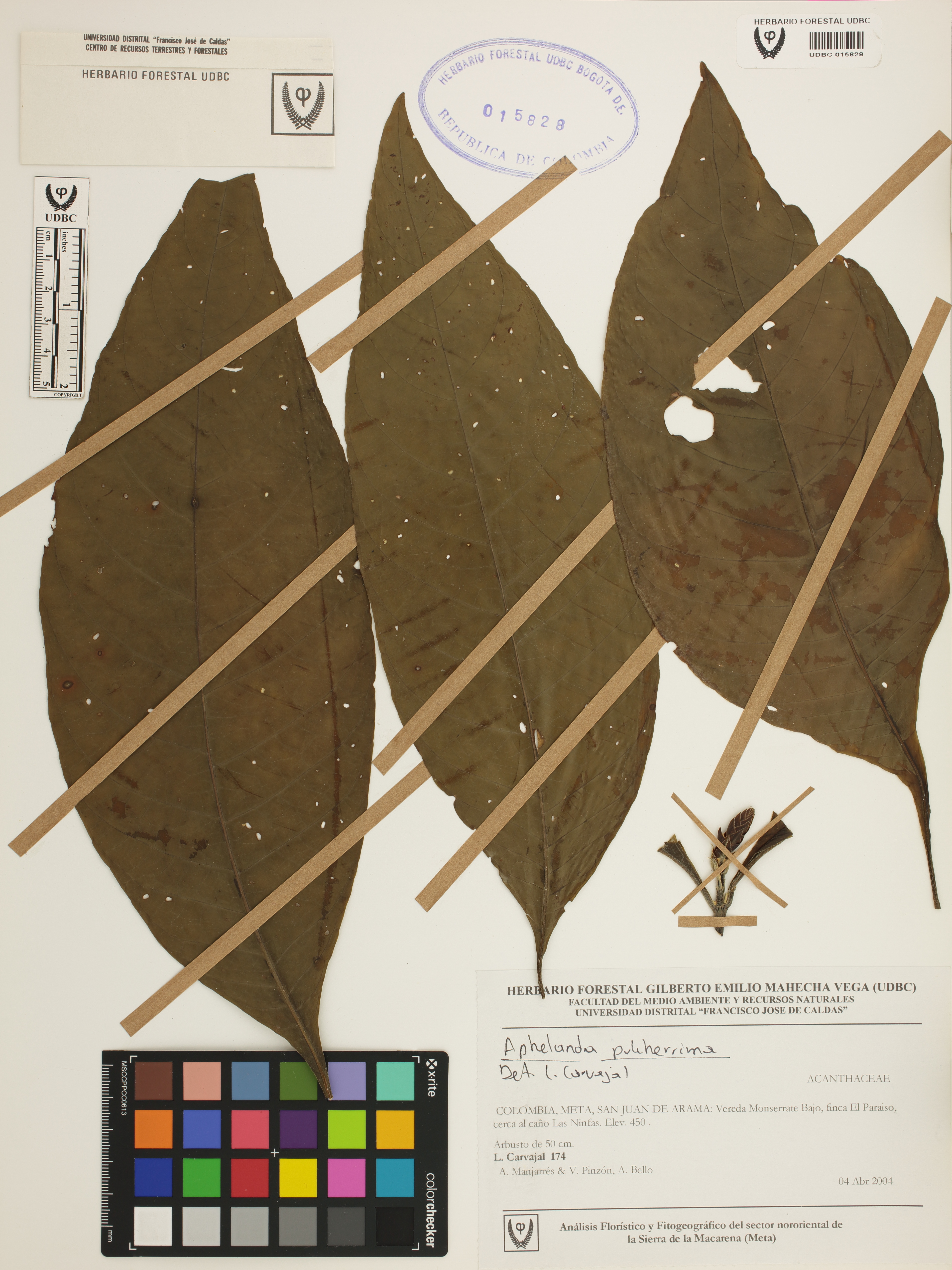Fotografía del ejemplar Carvajal, L. 174, determinado como Aphelandra pulcherrima