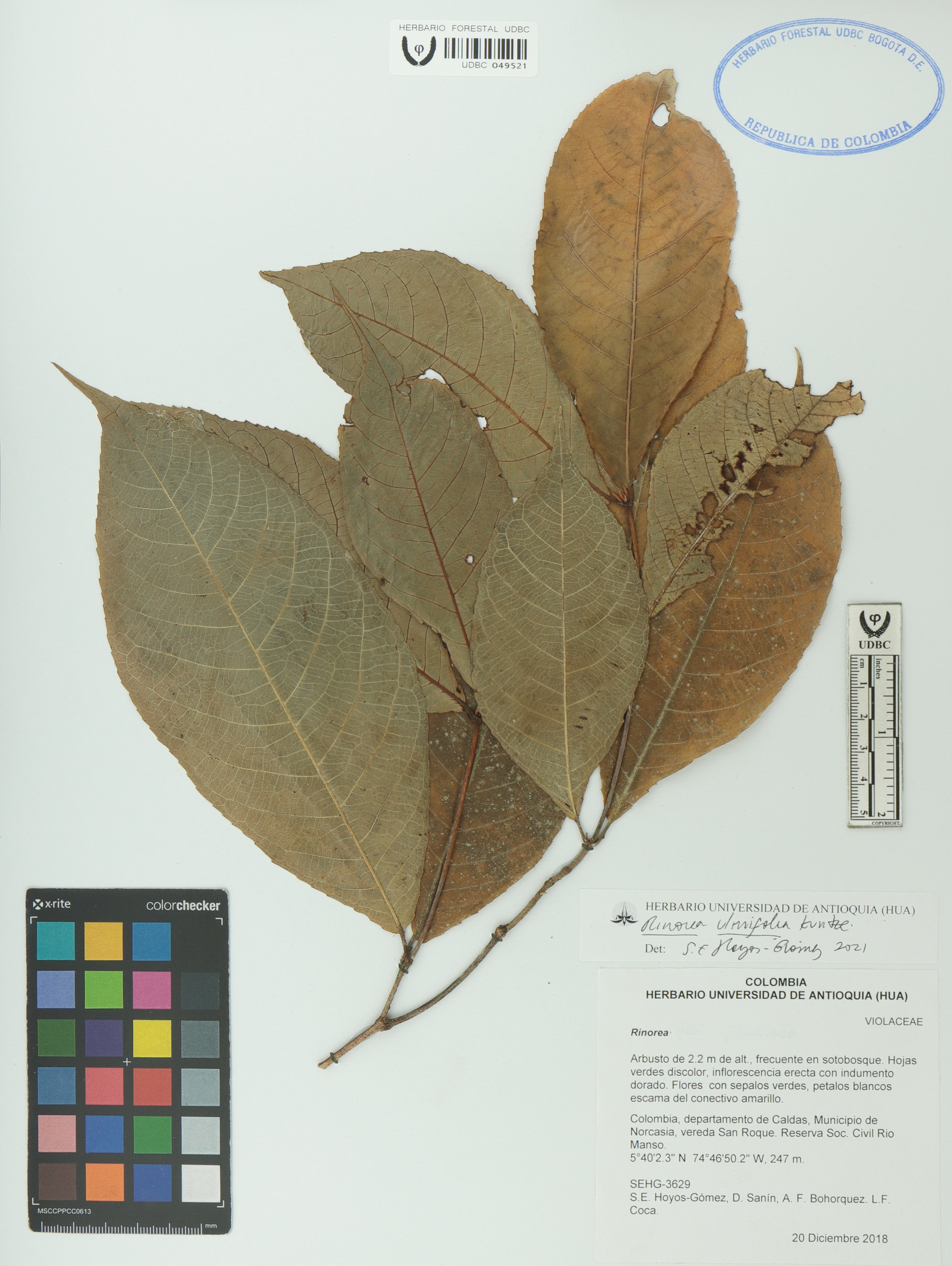 Fotografía del ejemplar Hoyos-G., S. 3629, determinado como Rinorea ulmifolia en el año 2021