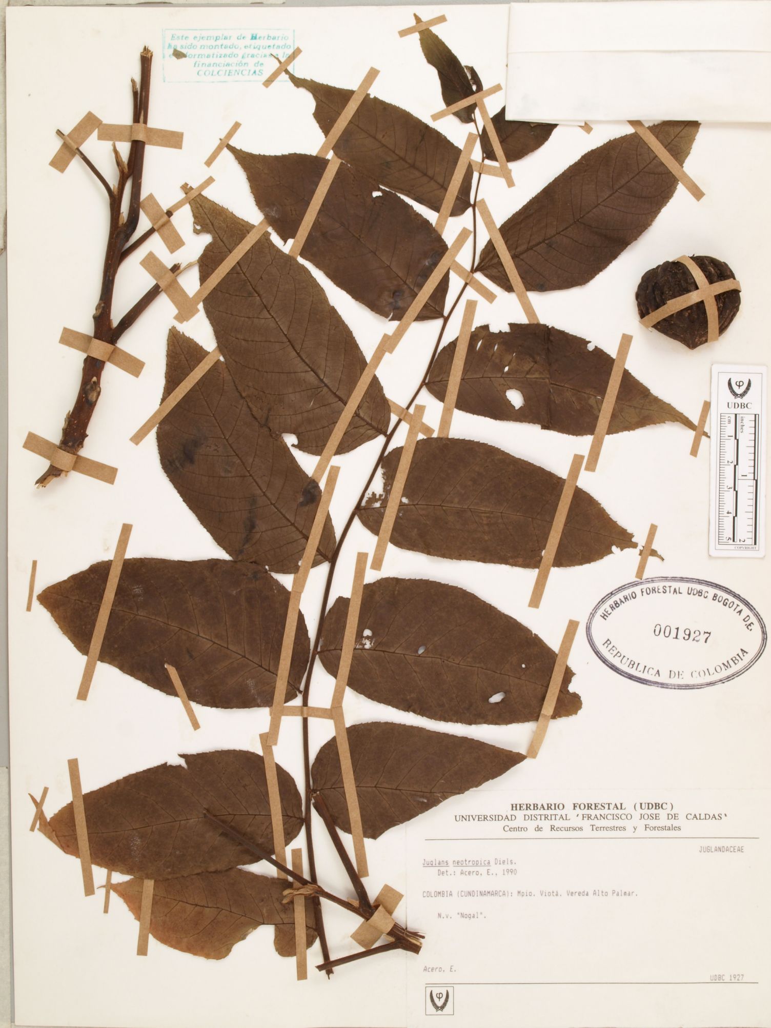 Fotografía del ejemplar Acero, E., determinado como Juglans neotropica en el año 1990