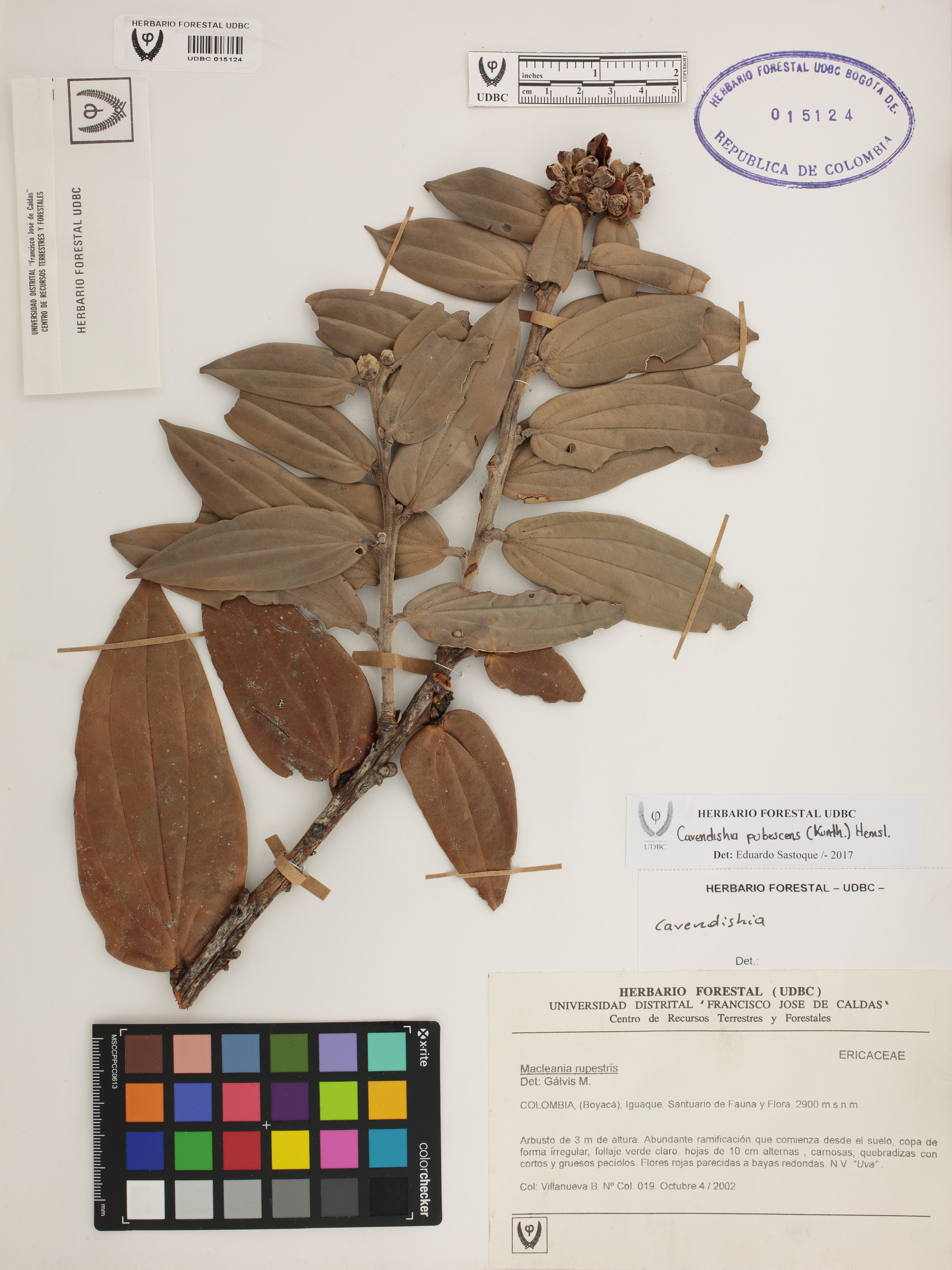 Fotografía del ejemplar Villanueva, B. 19, determinado como Cavendishia pubescens en el año 2017