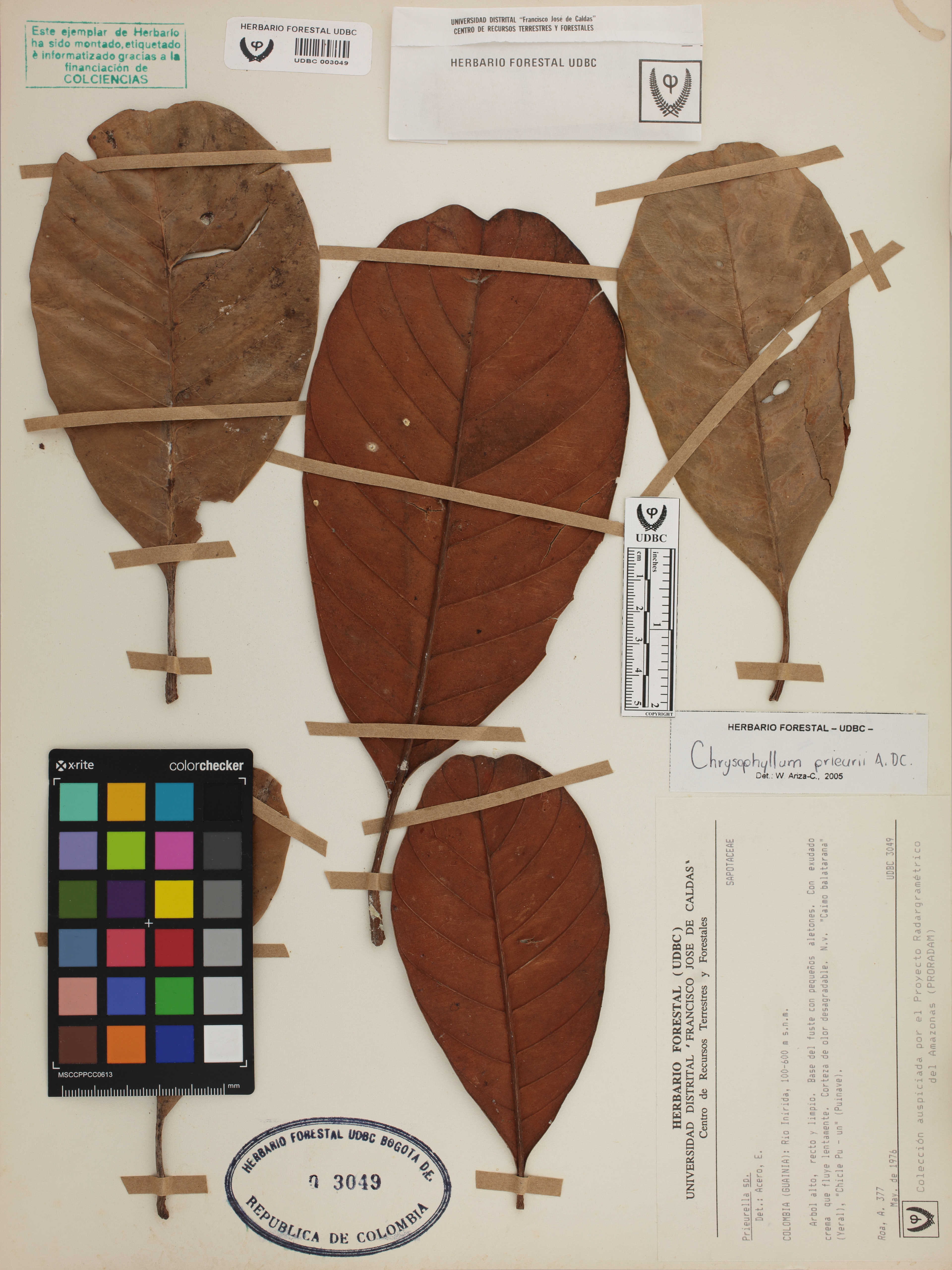 Fotografía del ejemplar Roa, A. 377, determinado como Prieurella prieurii en el año 2005