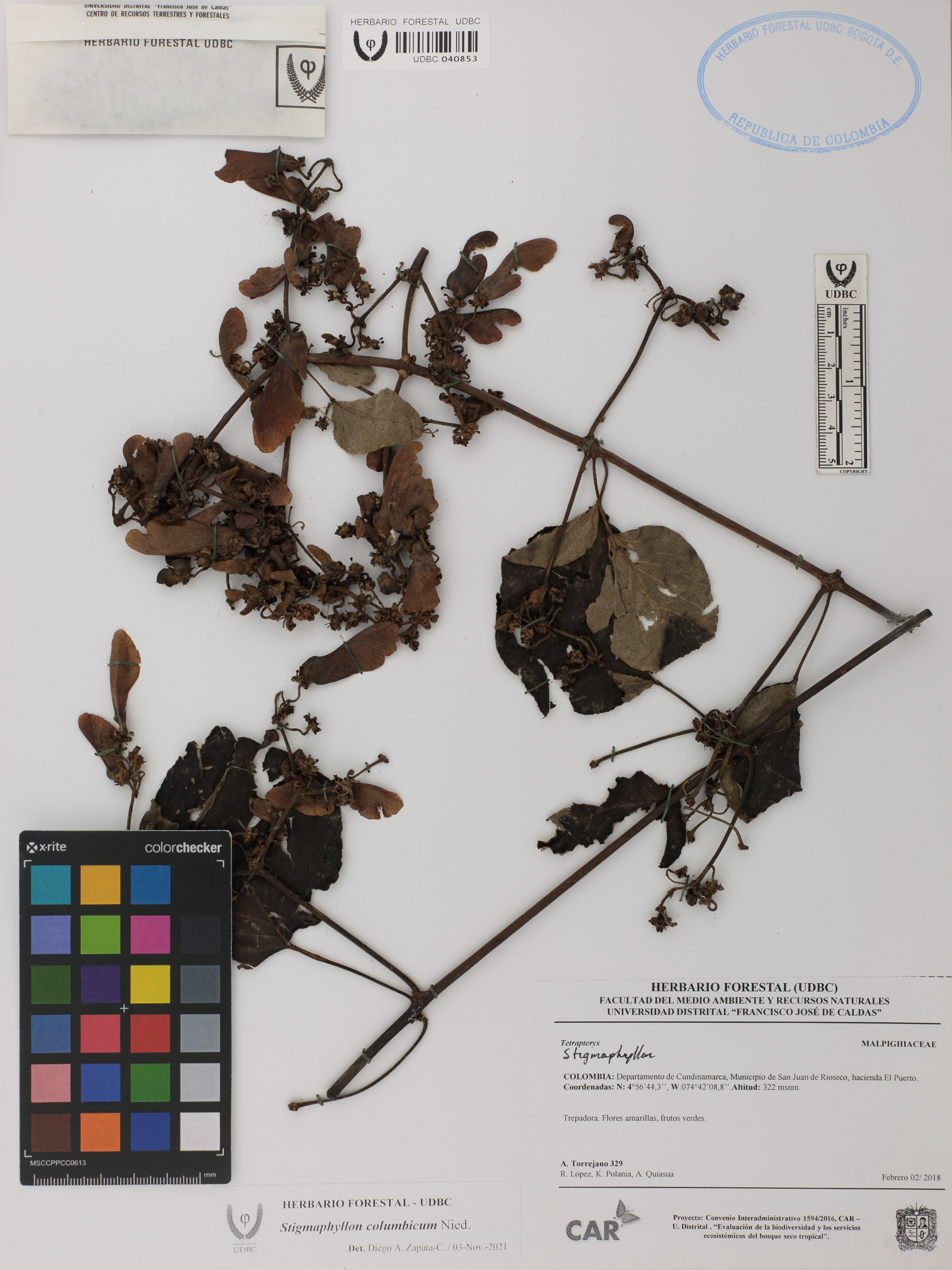 | dc.description | Fotografía del ejemplar Torrejano, A. 329, determinado como Stigmaphyllon columbicum en el año 2021 | |