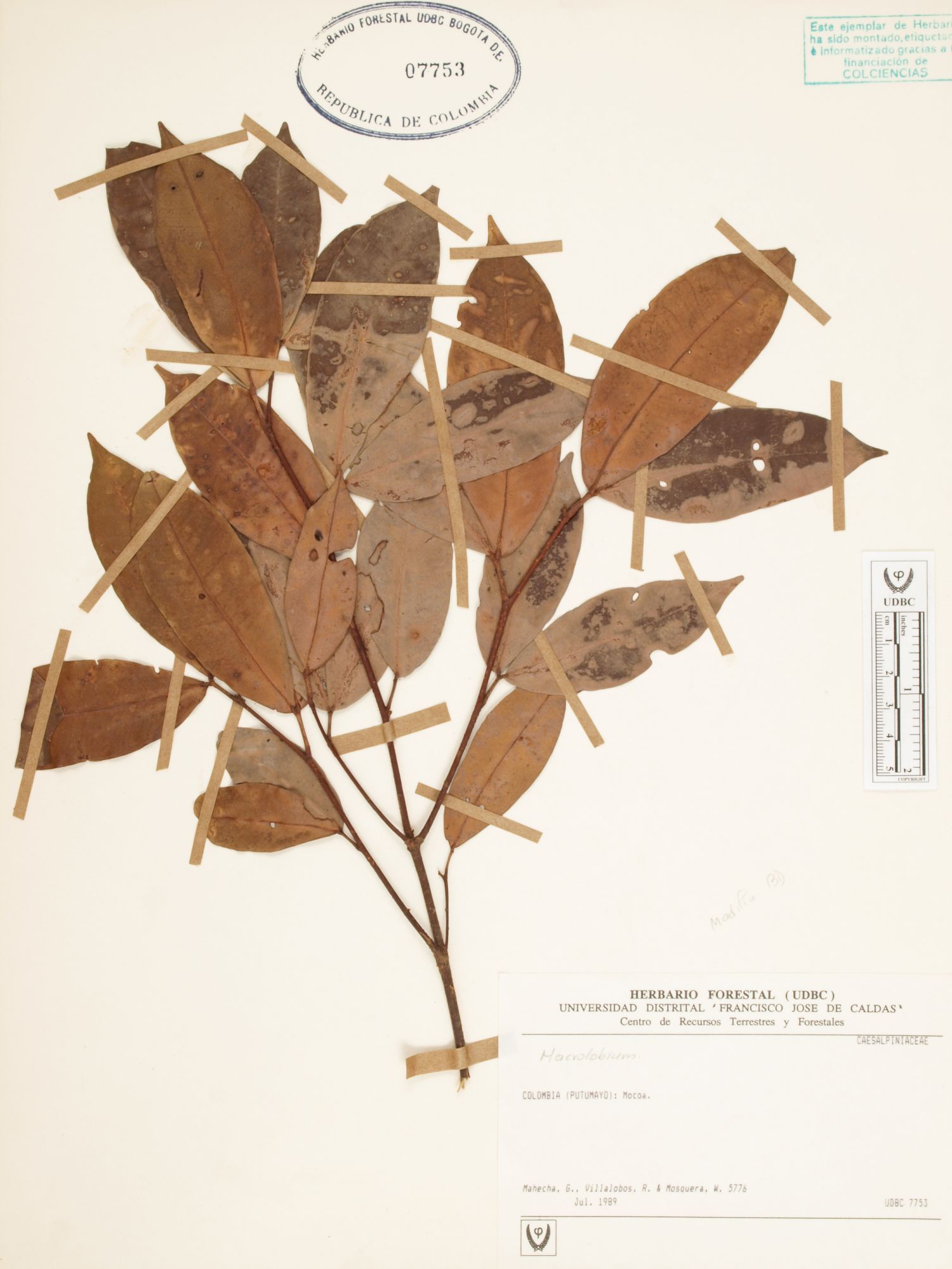 Fotografía del ejemplar Mahecha, G. 5776, determinado como Macrolobium sp.