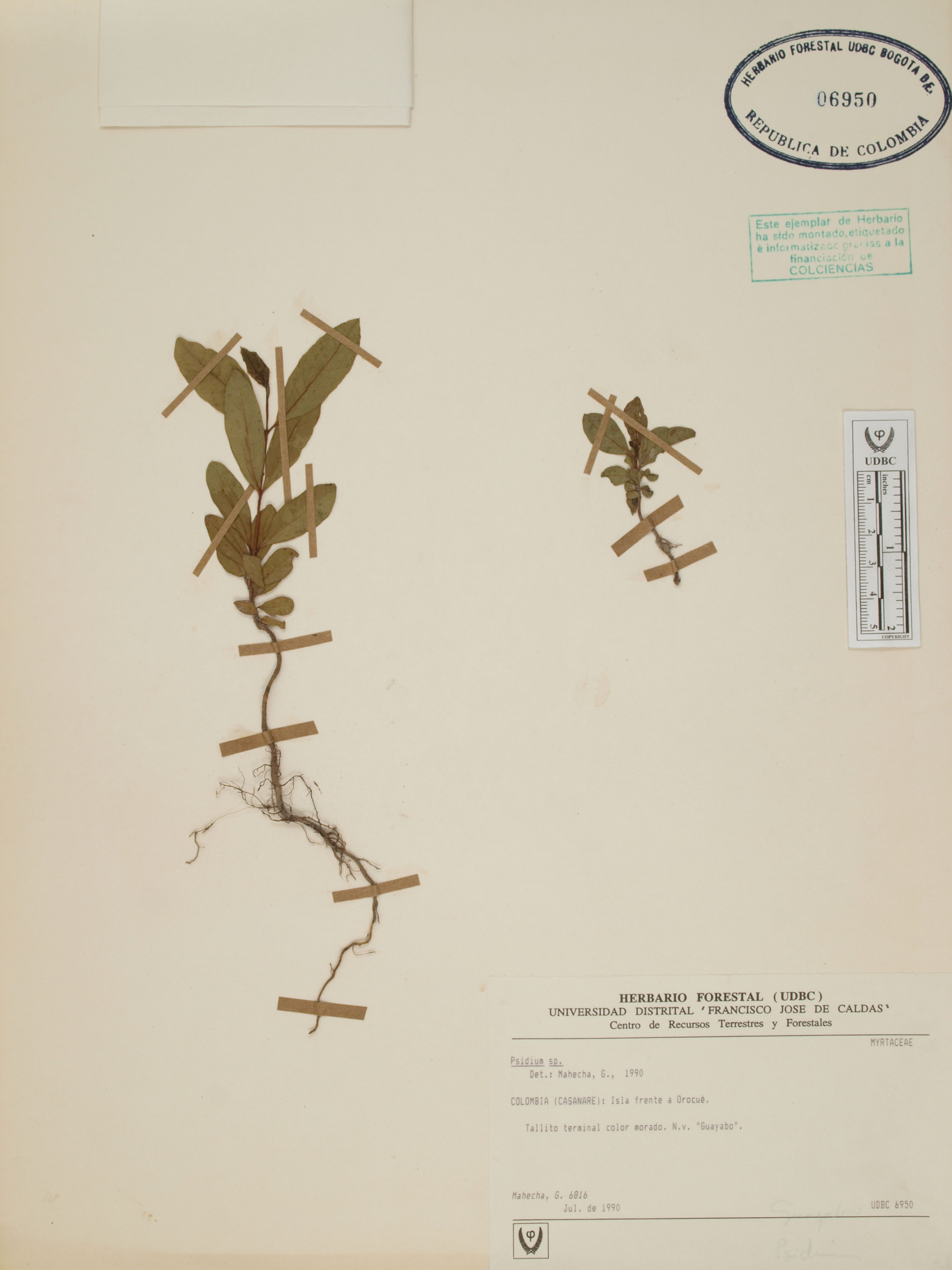 Fotografía del ejemplar Mahecha, G. 6816, determinado como Psidium sp.