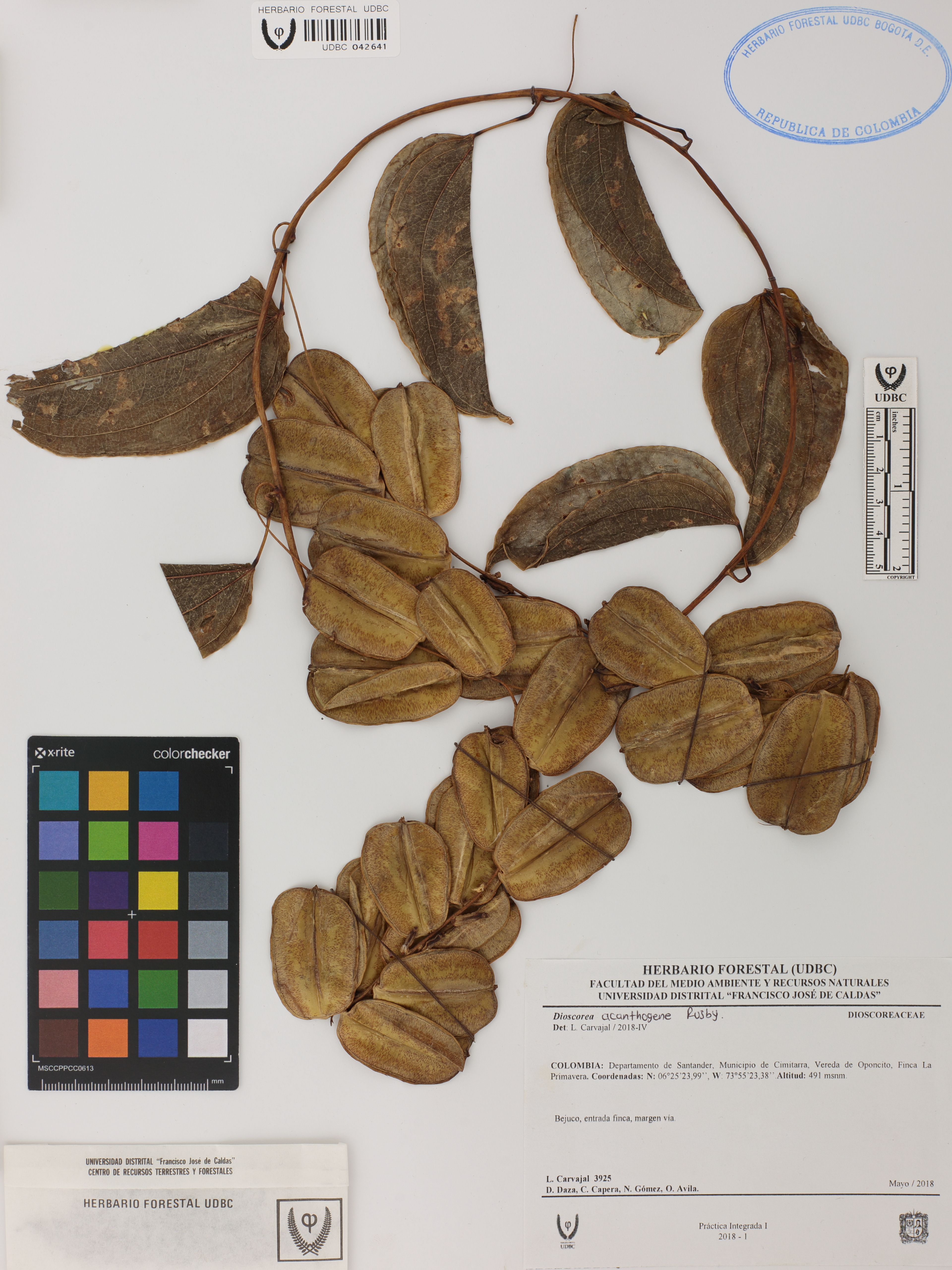 | dc.description | Fotografía del ejemplar Carvajal, L. 3925, determinado como Dioscorea acanthogene en el año 2018 | |