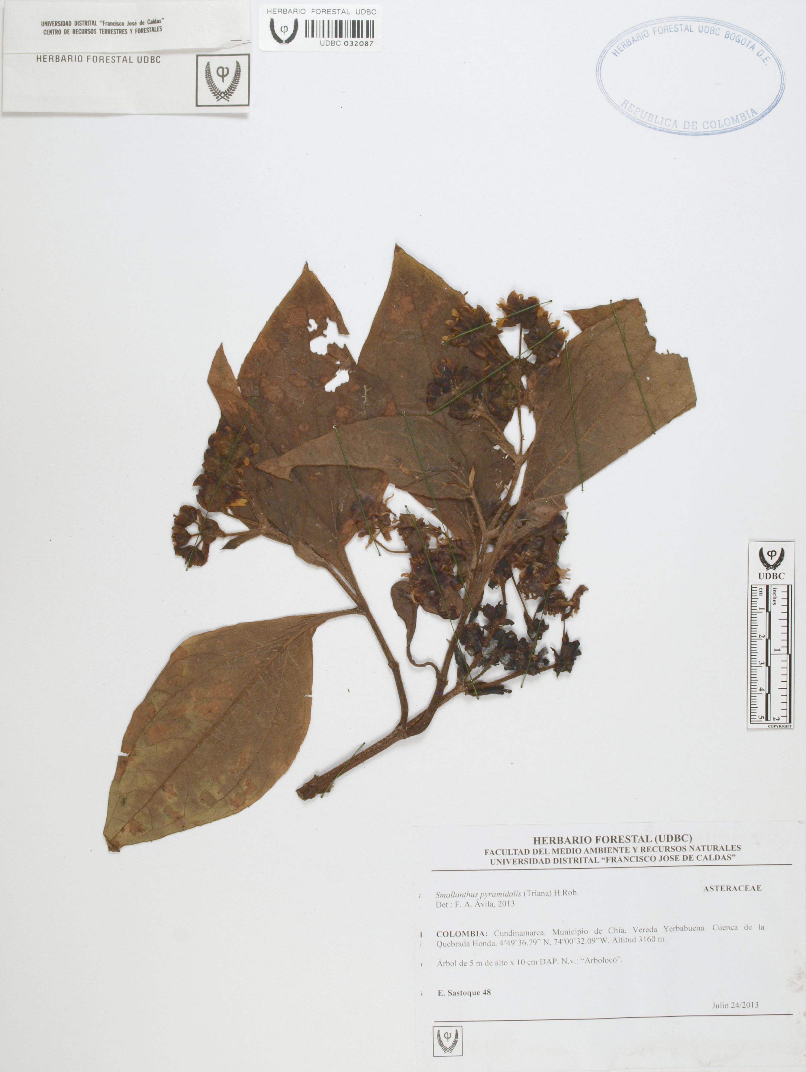 Fotografía del ejemplar Sastoque, E. 48, determinado como Smallanthus pyramidalis en el año 2013