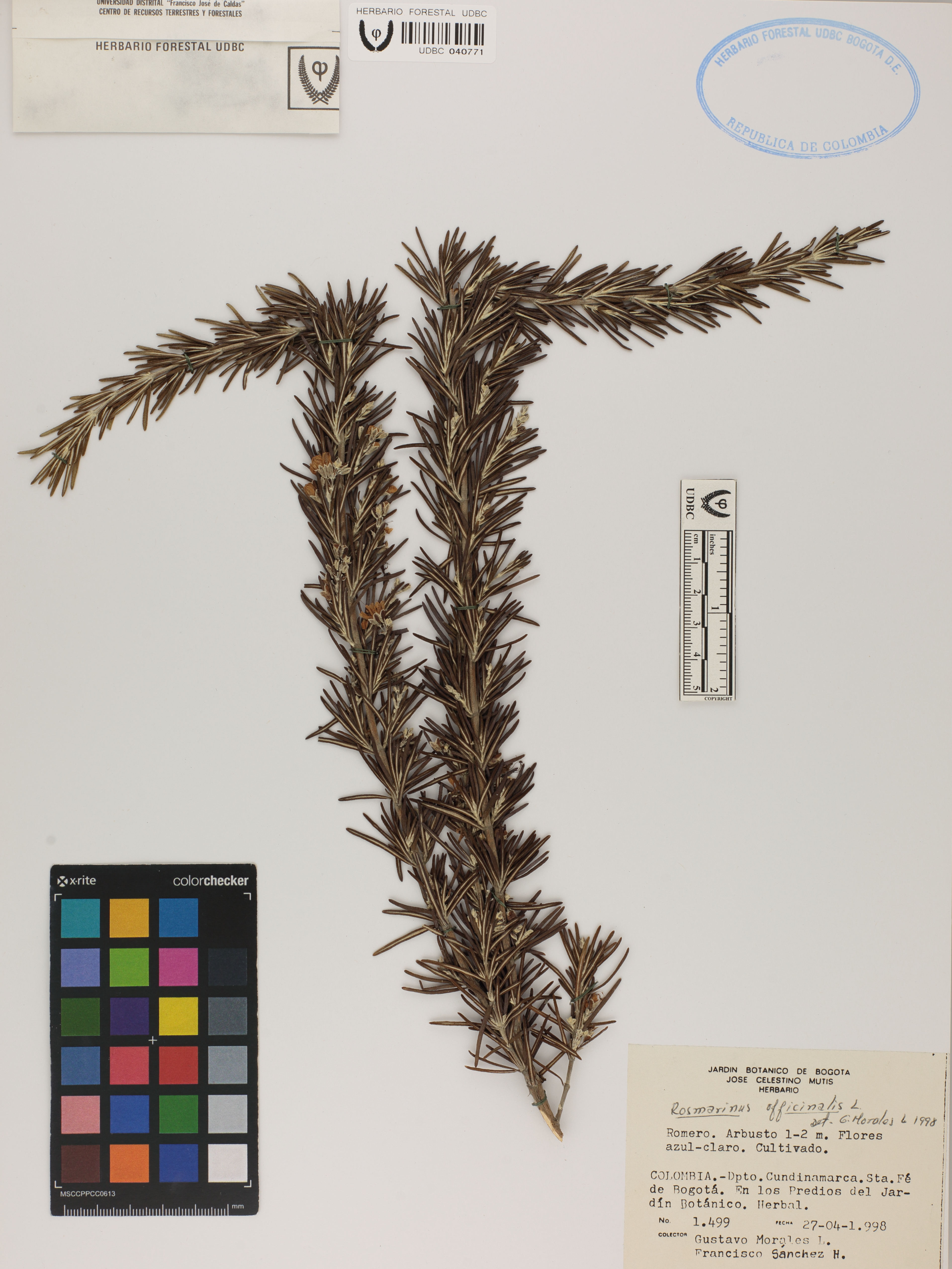 Fotografía del ejemplar Morales, G. 1499, determinado como Rosmarinus officinalis