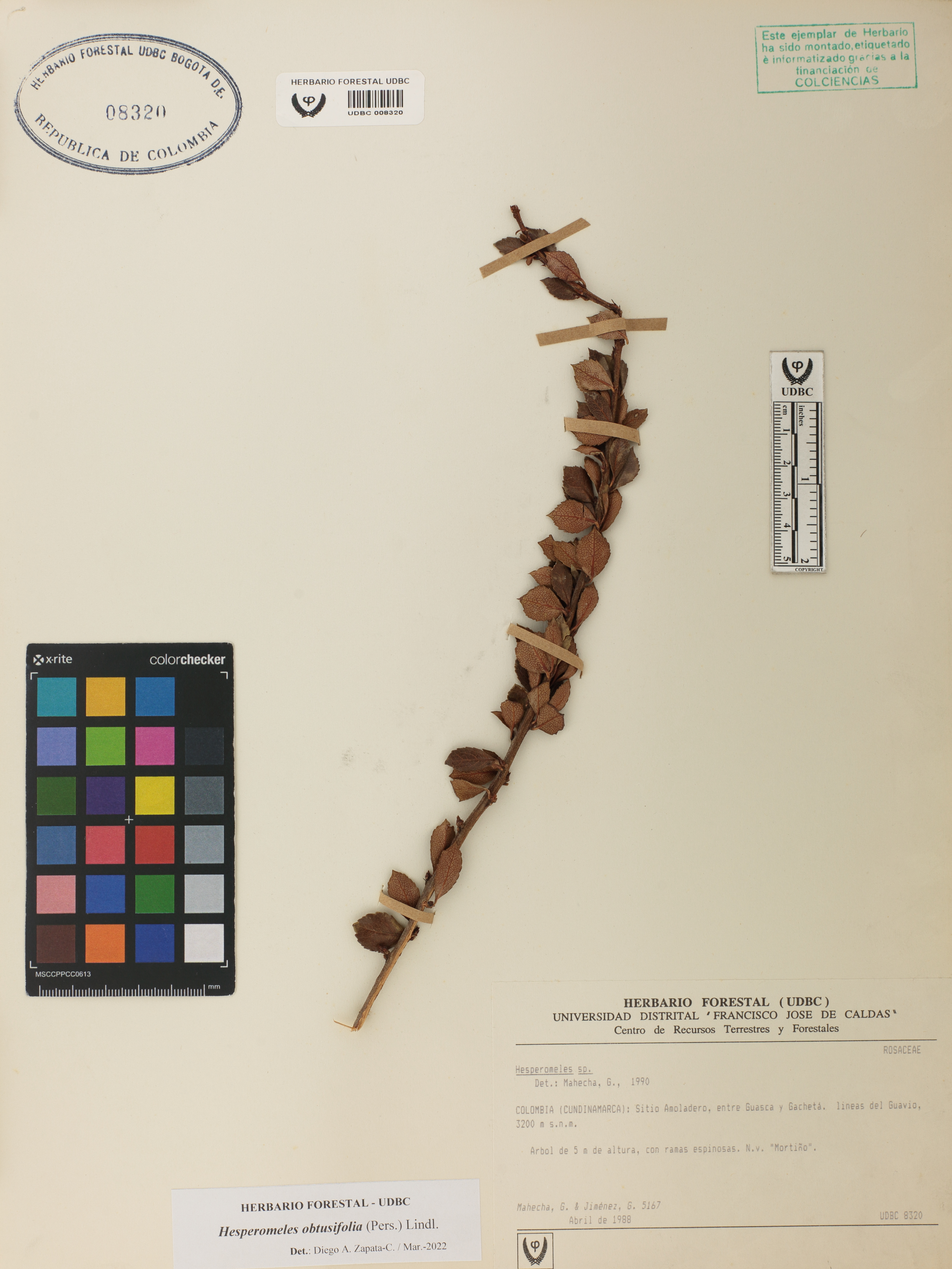 Fotografía del ejemplar Mahecha, G. 5147, determinado como Hesperomeles obtusifolia en el año 2022