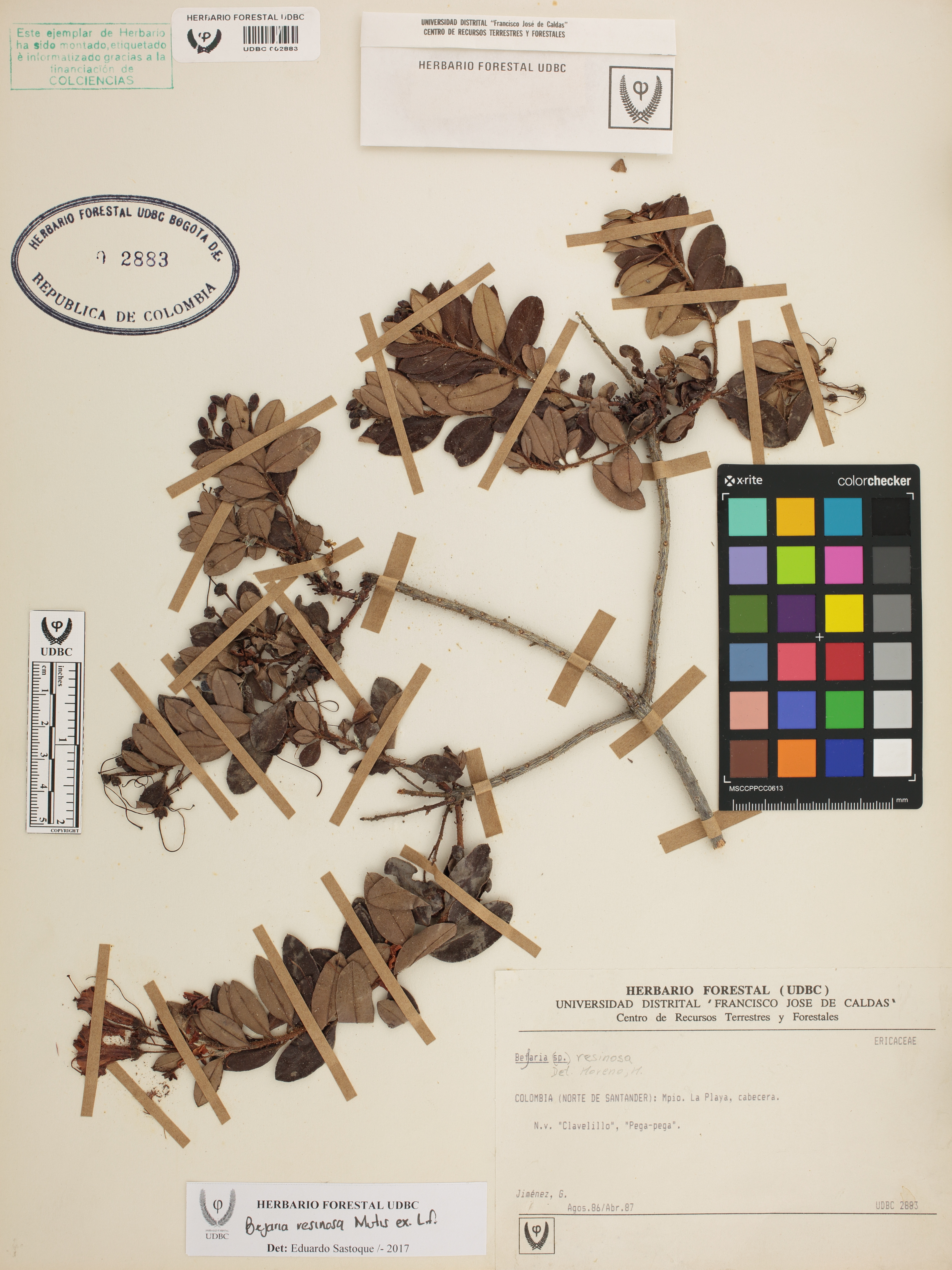 | dc.description | Fotografía del ejemplar Jiménez, G., determinado como Bejaria resinosa | |