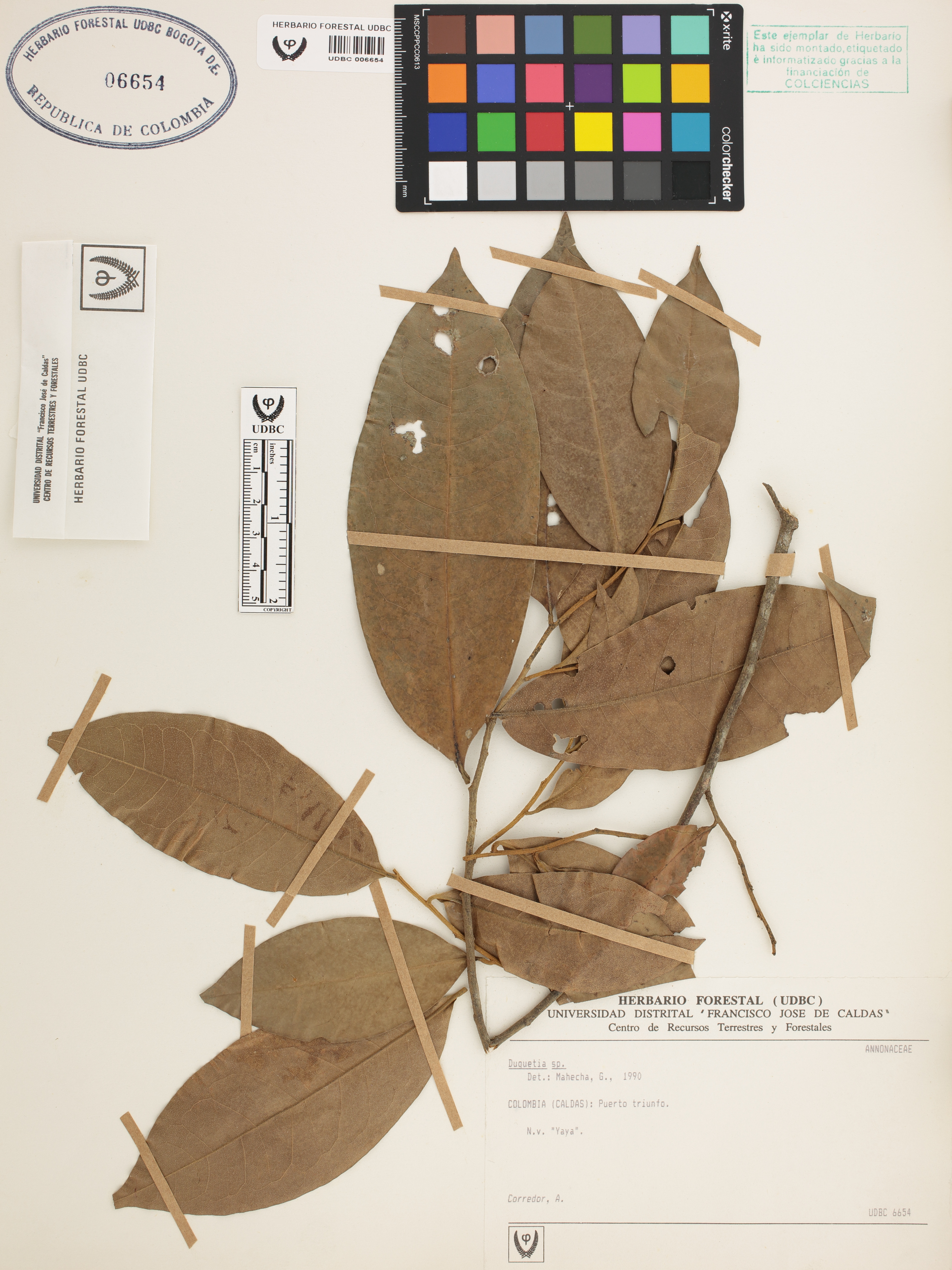 Fotografía del ejemplar Corredor, A., determinado como Duguetia sp. en el año 1990