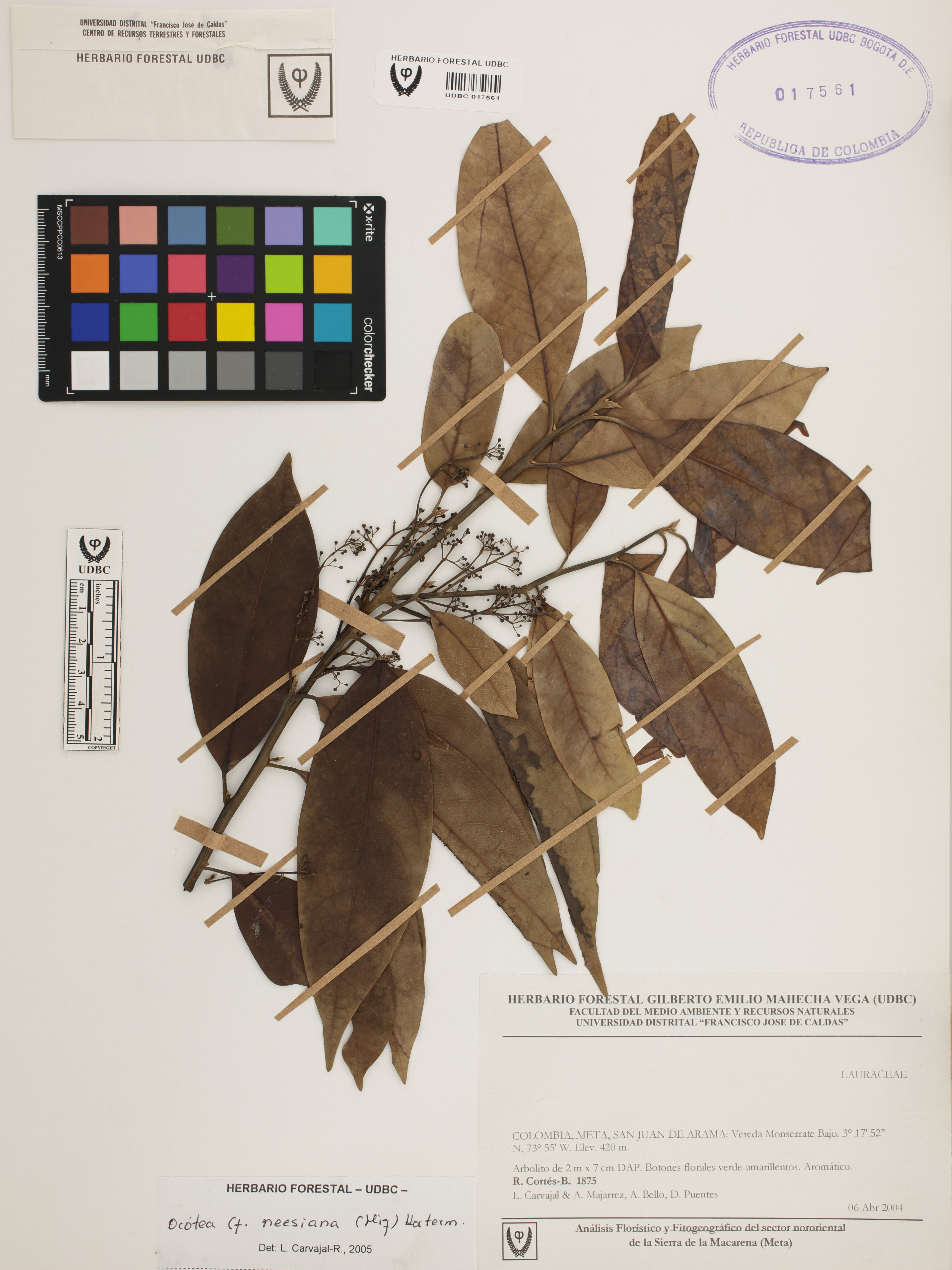 Fotografía del ejemplar Cortés-B., R. 1875, determinado como Ocotea neesiana en el año 2005