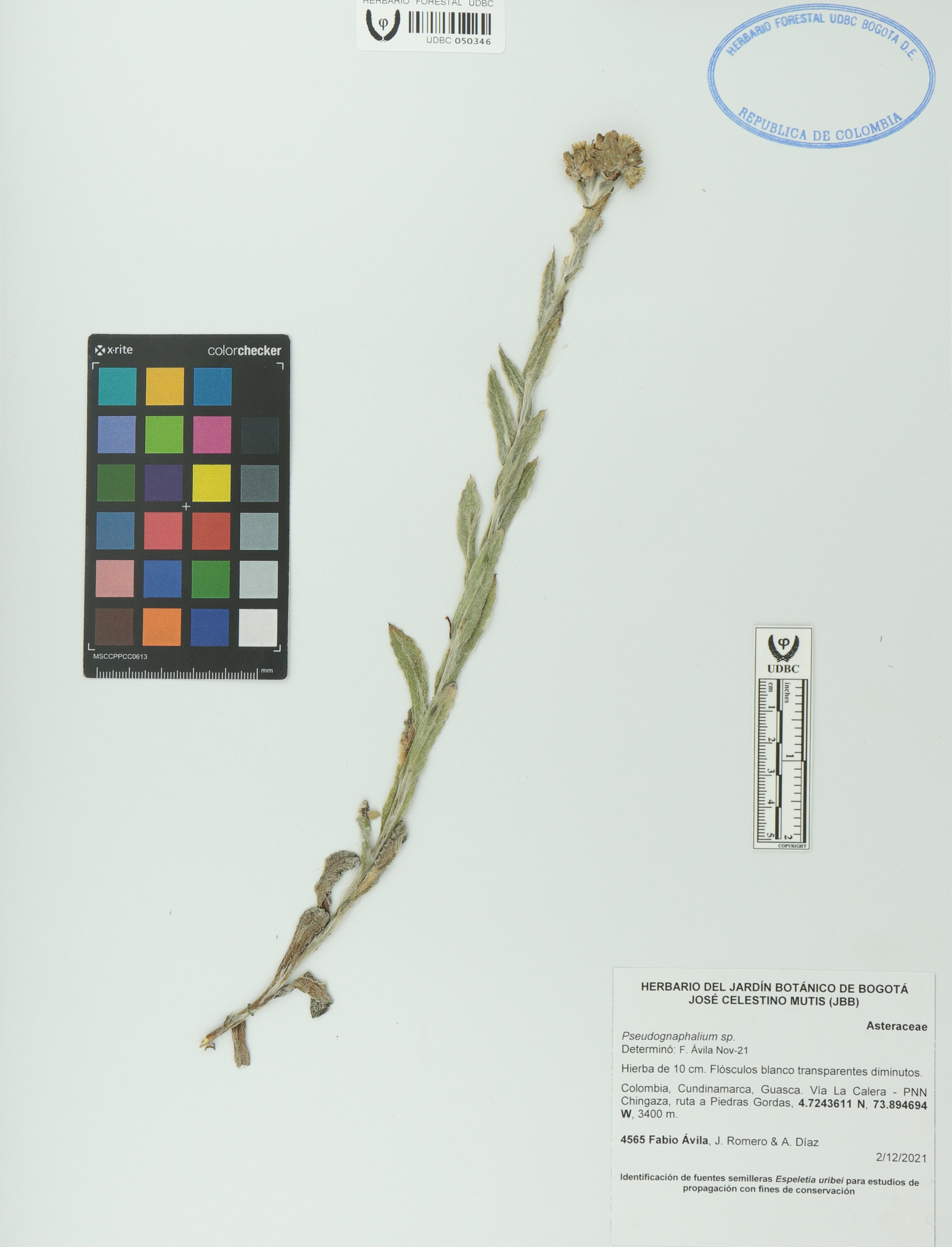 Fotografía del ejemplar Ávila, F. 4565, determinado como Pseudognaphalium sp.