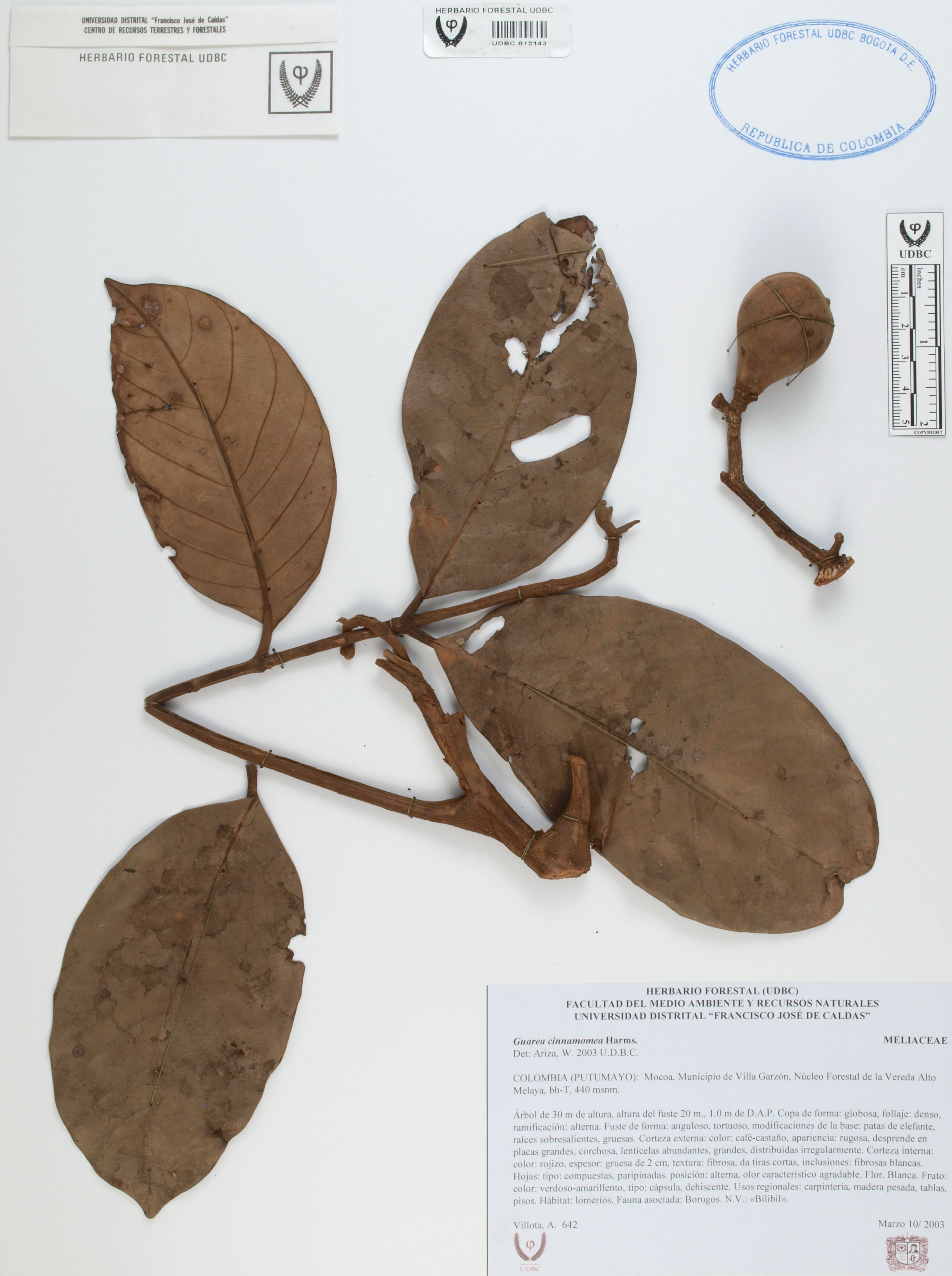 Fotografía del ejemplar Villota, A. 642, determinado como Guarea cinnamomea en el año 2003