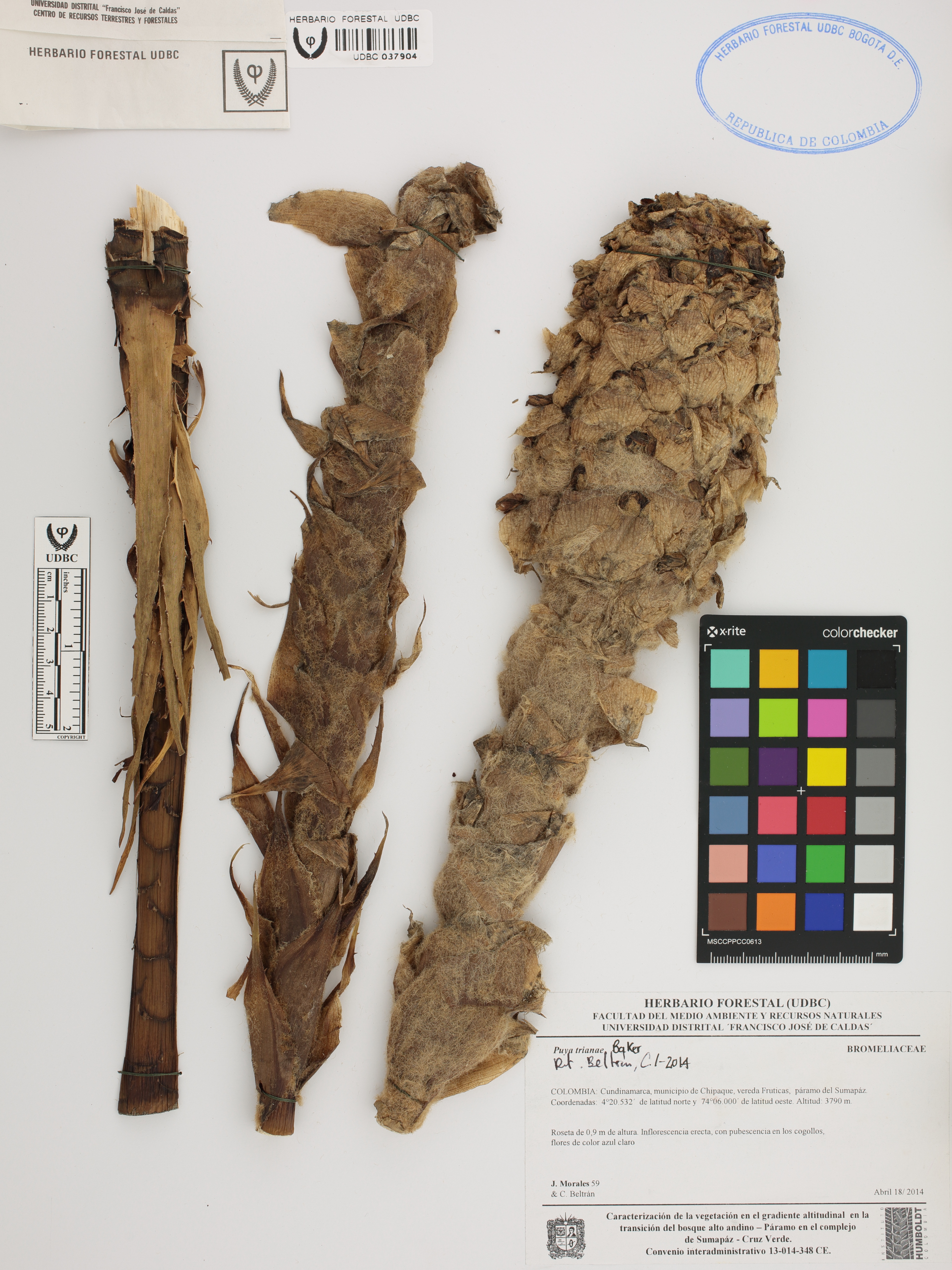 Fotografía del ejemplar Morales, J. 59, determinado como Puya trianae en el año 2014