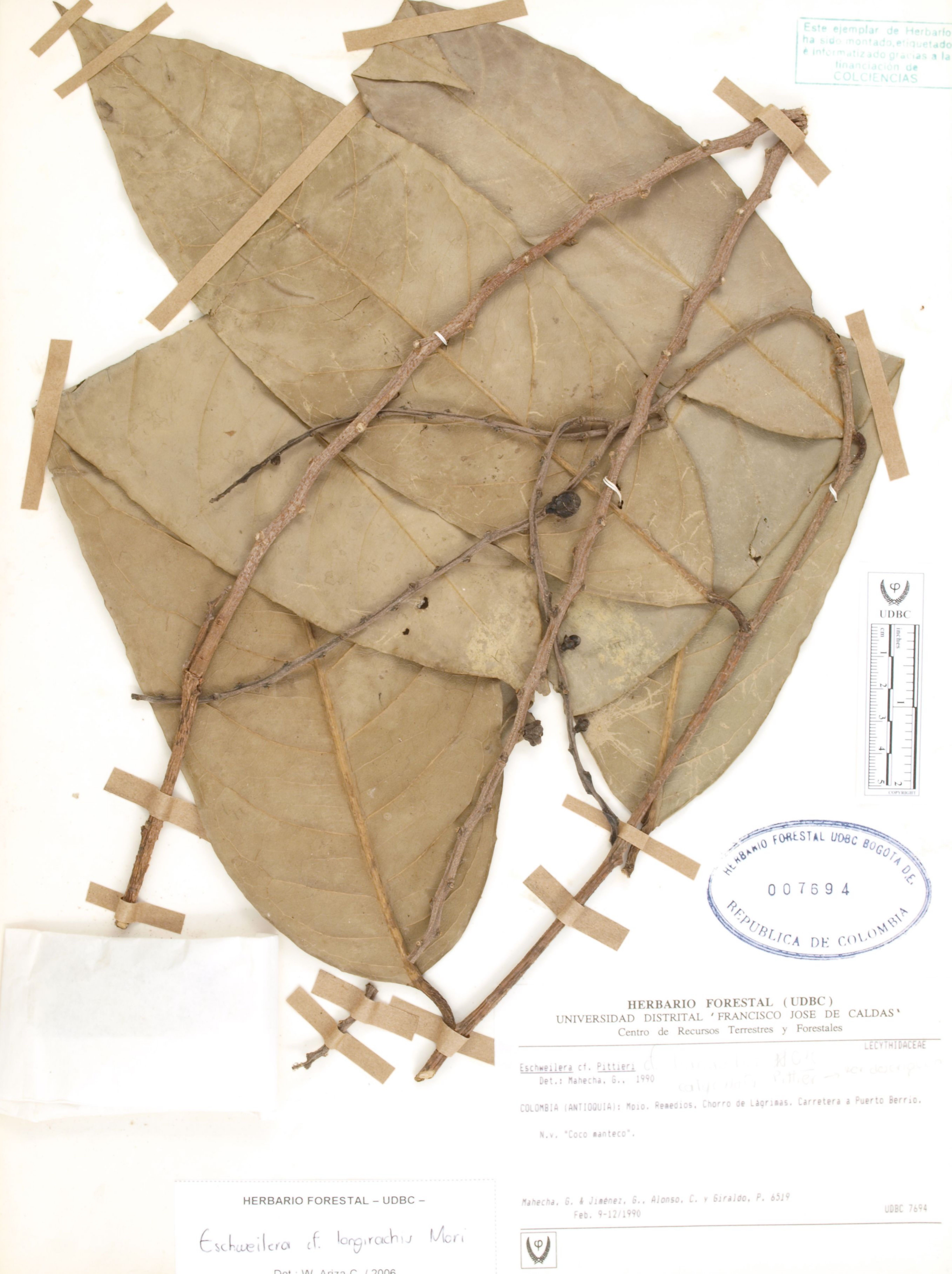 Fotografía del ejemplar Mahecha, G. 6519, determinado como Eschweilera longirachis en el año 2006