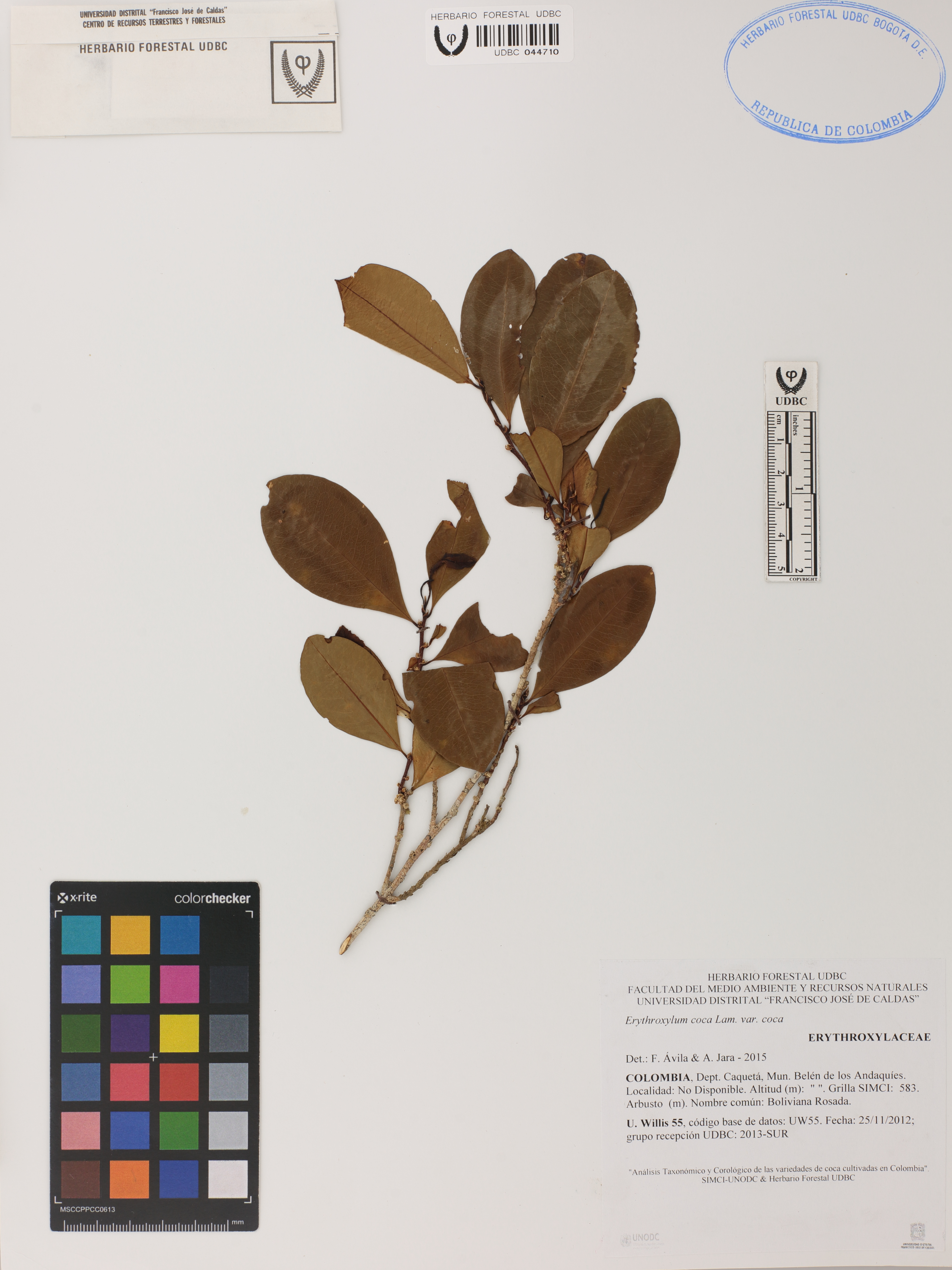 | dc.description | Fotografía del ejemplar Willis, U. 55, determinado como Erythroxylum coca var. coca en el año 2015 | |