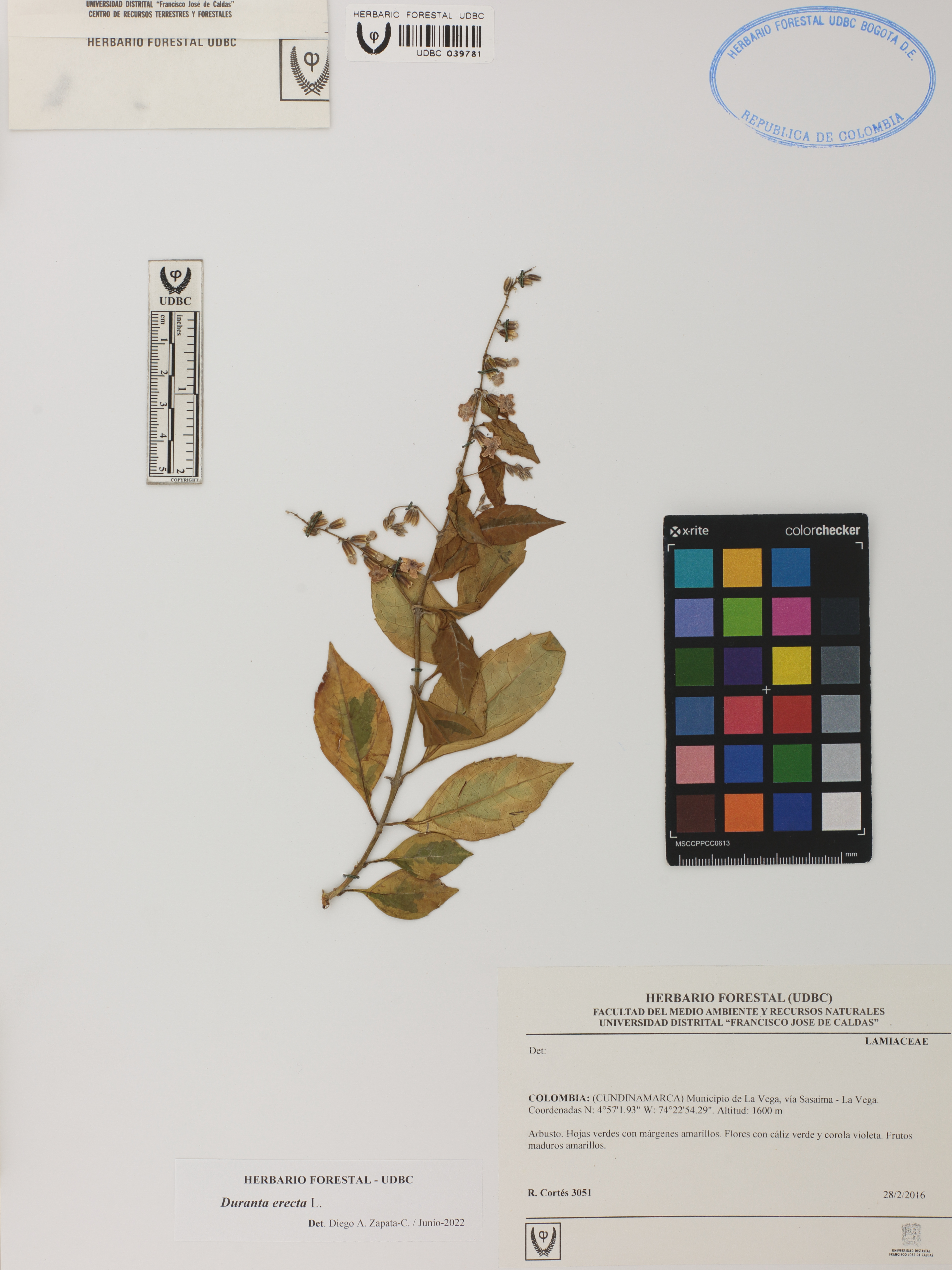 Fotografía del ejemplar Cortés, R. 3051, determinado como Duranta erecta en el año 2022