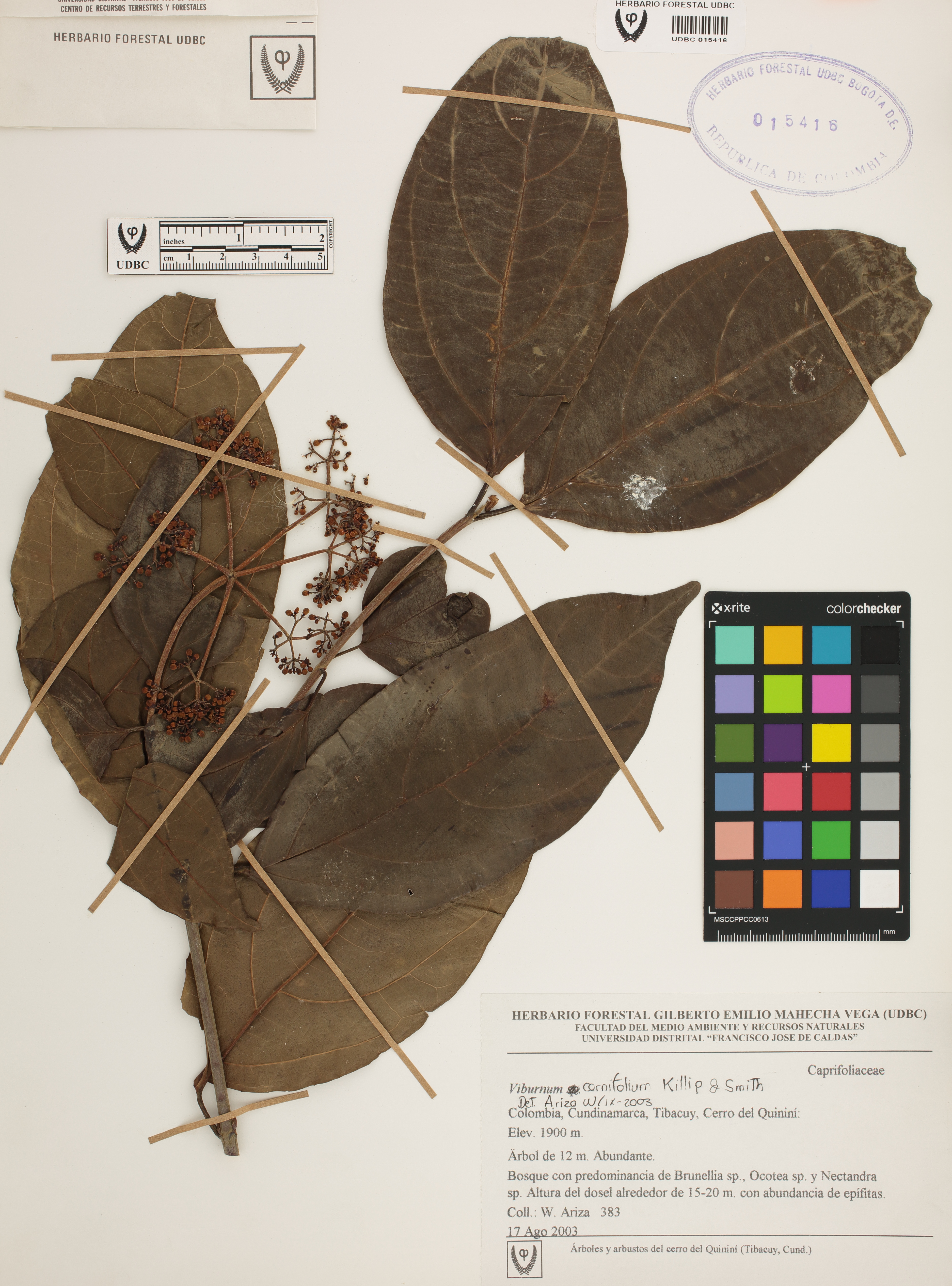 Fotografía del ejemplar Ariza, W. 383, determinado como Viburnum cornifolium en el año 2003