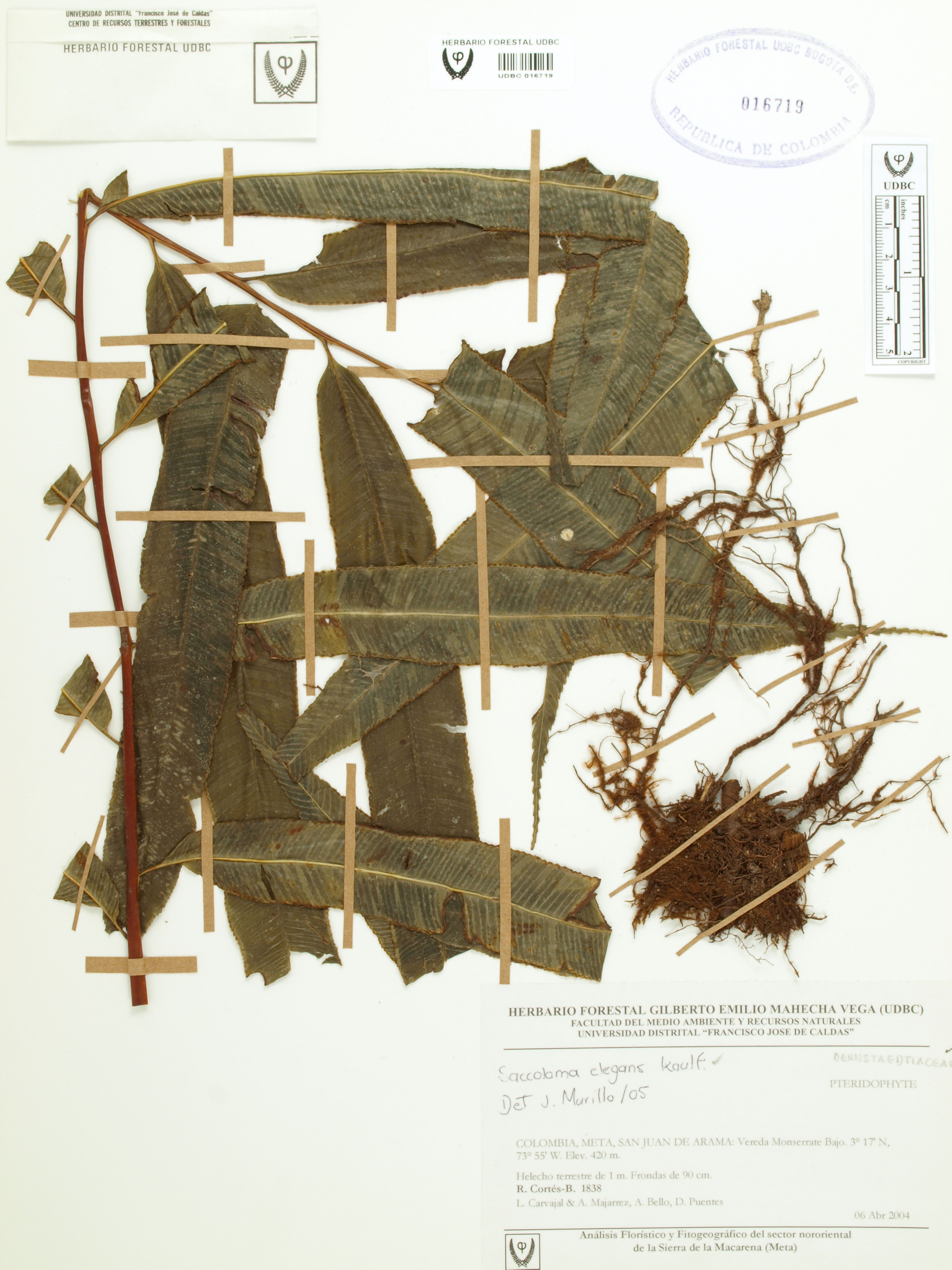 Fotografía del ejemplar Cortés-B., R. 1838, determinado como Saccoloma elegans en el año 2005