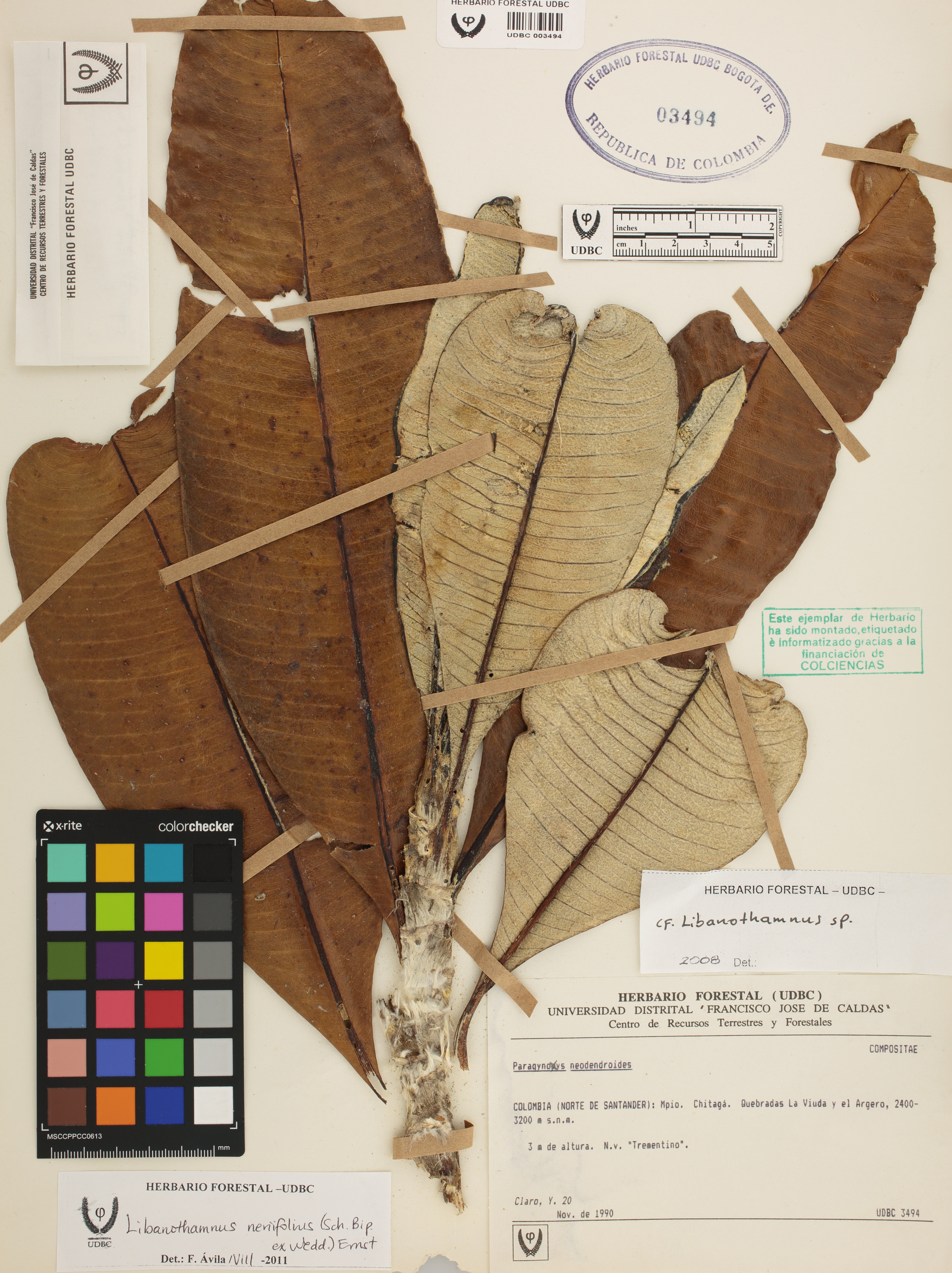 Fotografía del ejemplar Claro, Y. 20, determinado como Libanothamnus neriifolius en el año 2011