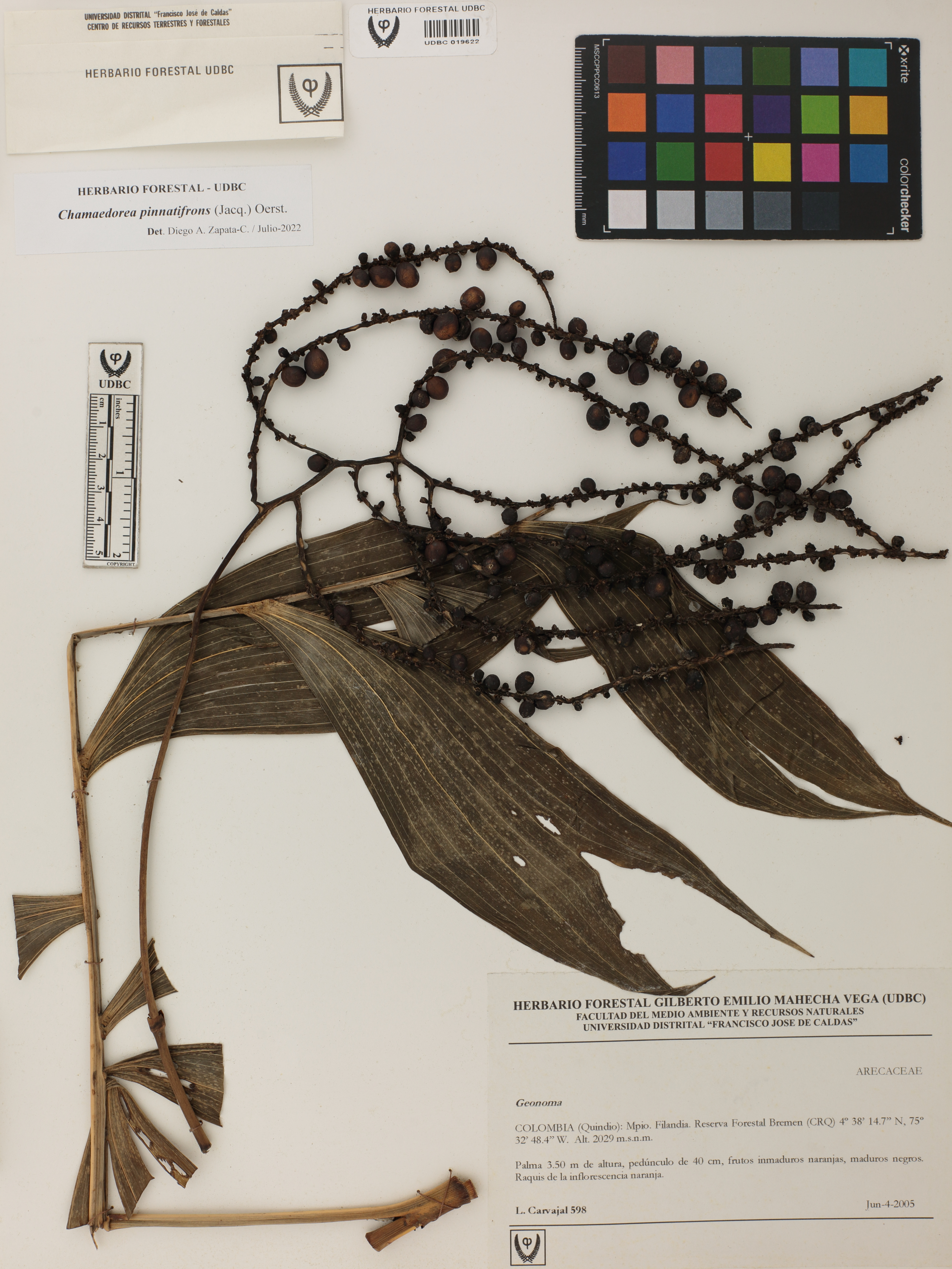 | dc.description | Fotografía del ejemplar Carvajal, L. 598, determinado como Chamaedorea pinnatifrons en el año 2022 | |