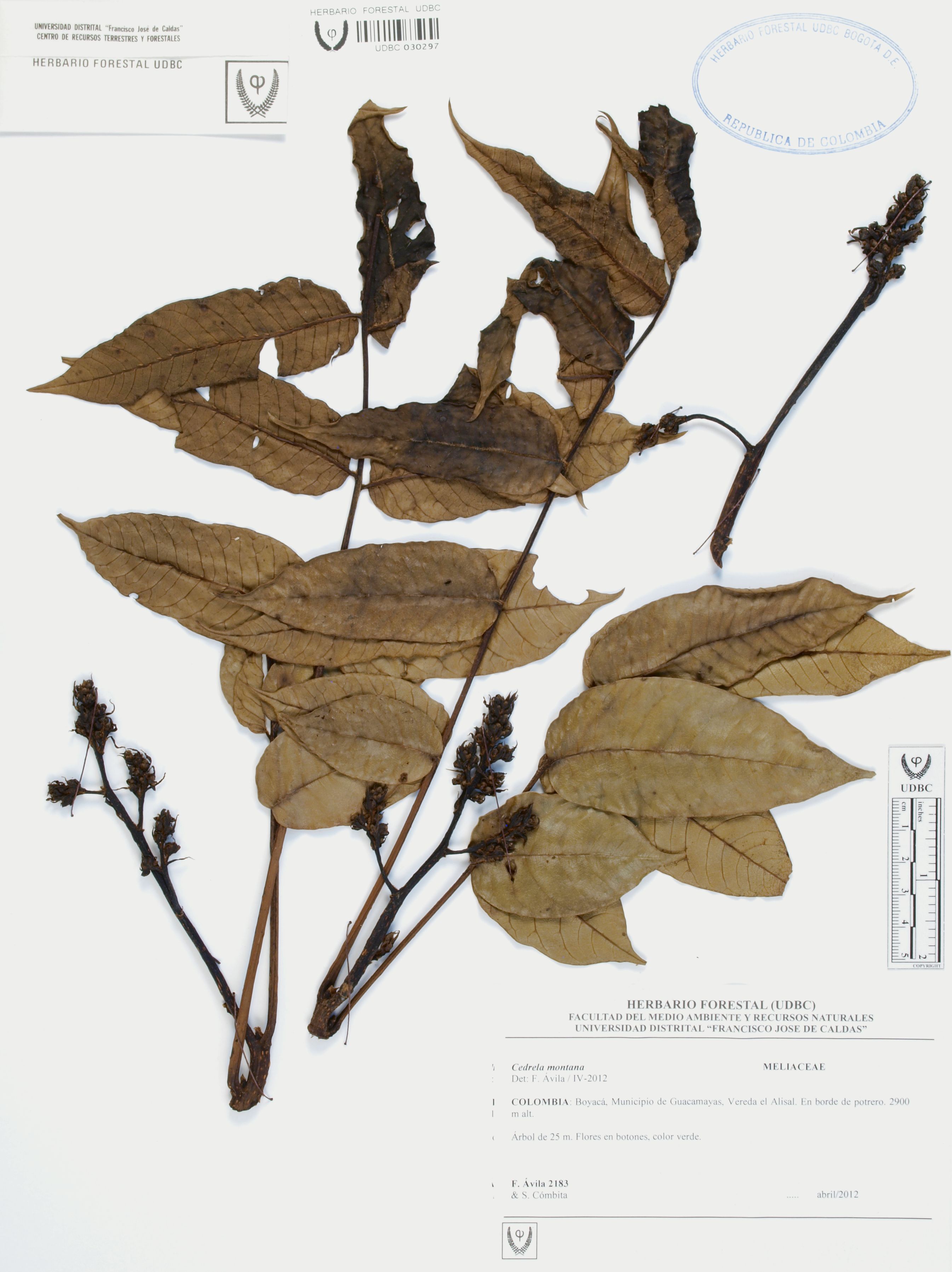 Fotografía del ejemplar Ávila, F. 2183, determinado como Cedrela montana en el año 2012