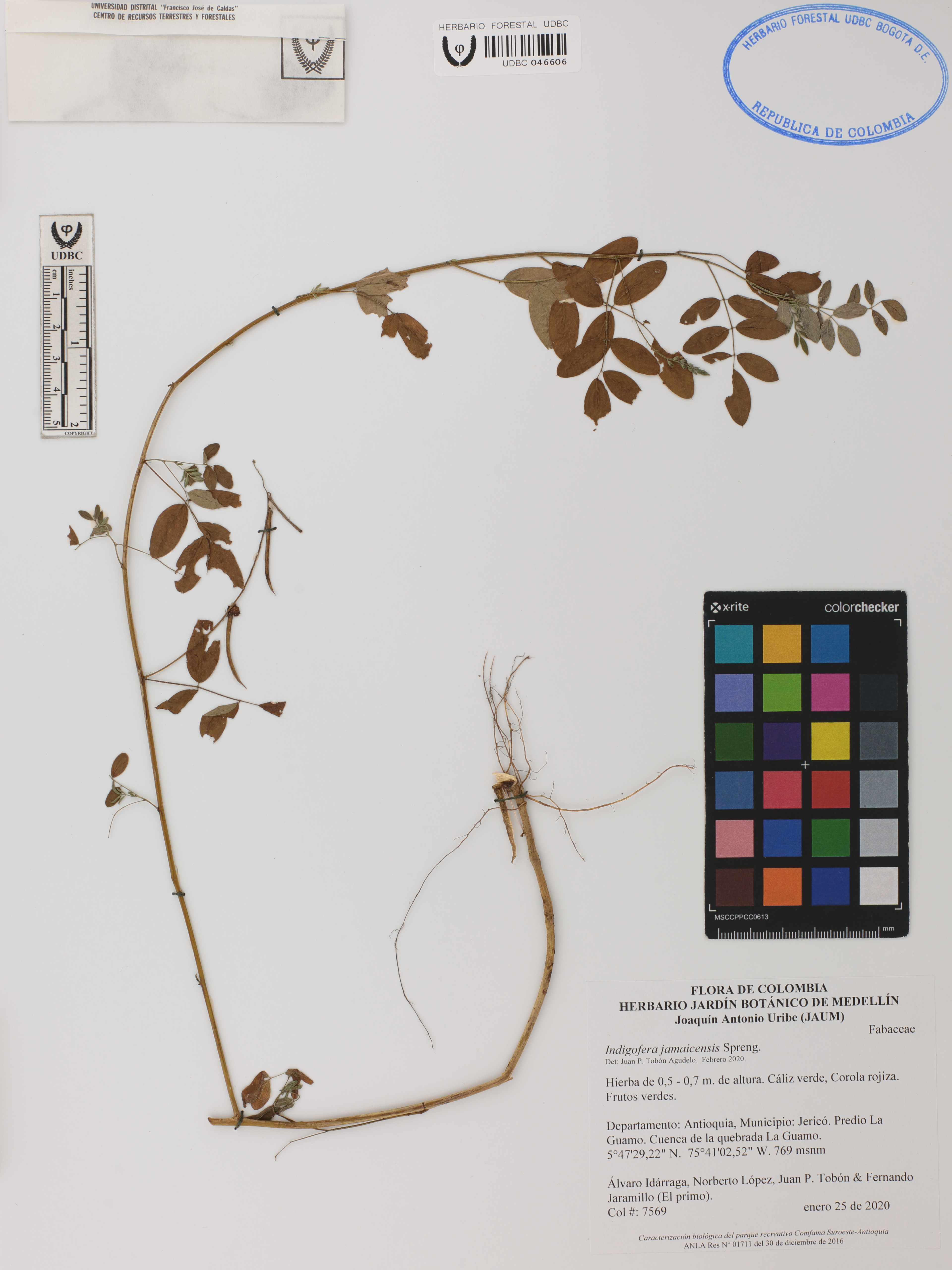 Fotografía del ejemplar Idárraga, Á. 7569, determinado como Indigofera jamaicensis en el año 2020