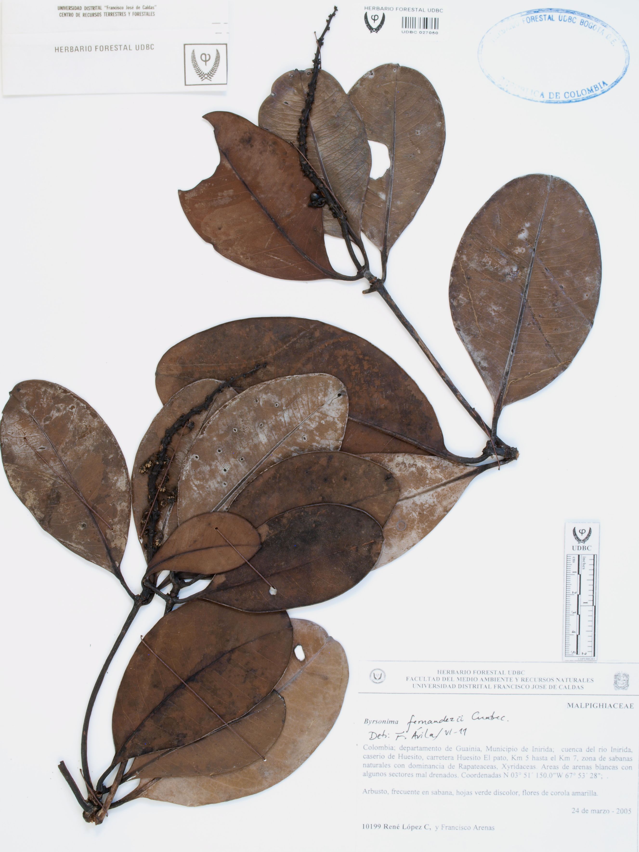 Fotografía del ejemplar López, R. 10199, determinado como Byrsonima fernandezii en el año 2011