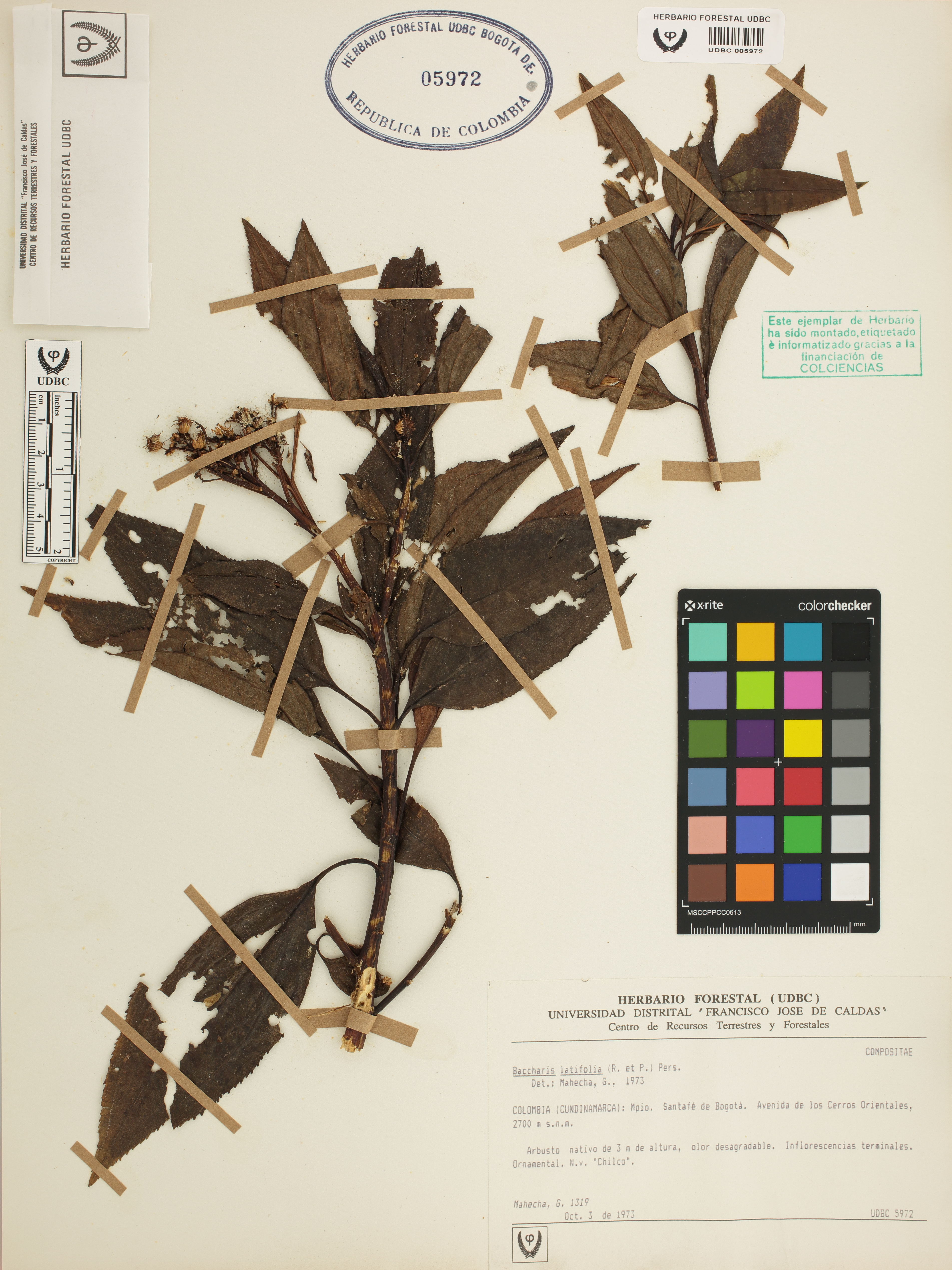 Fotografía del ejemplar Mahecha, G. 1319, determinado como Baccharis latifolia en el año 1973