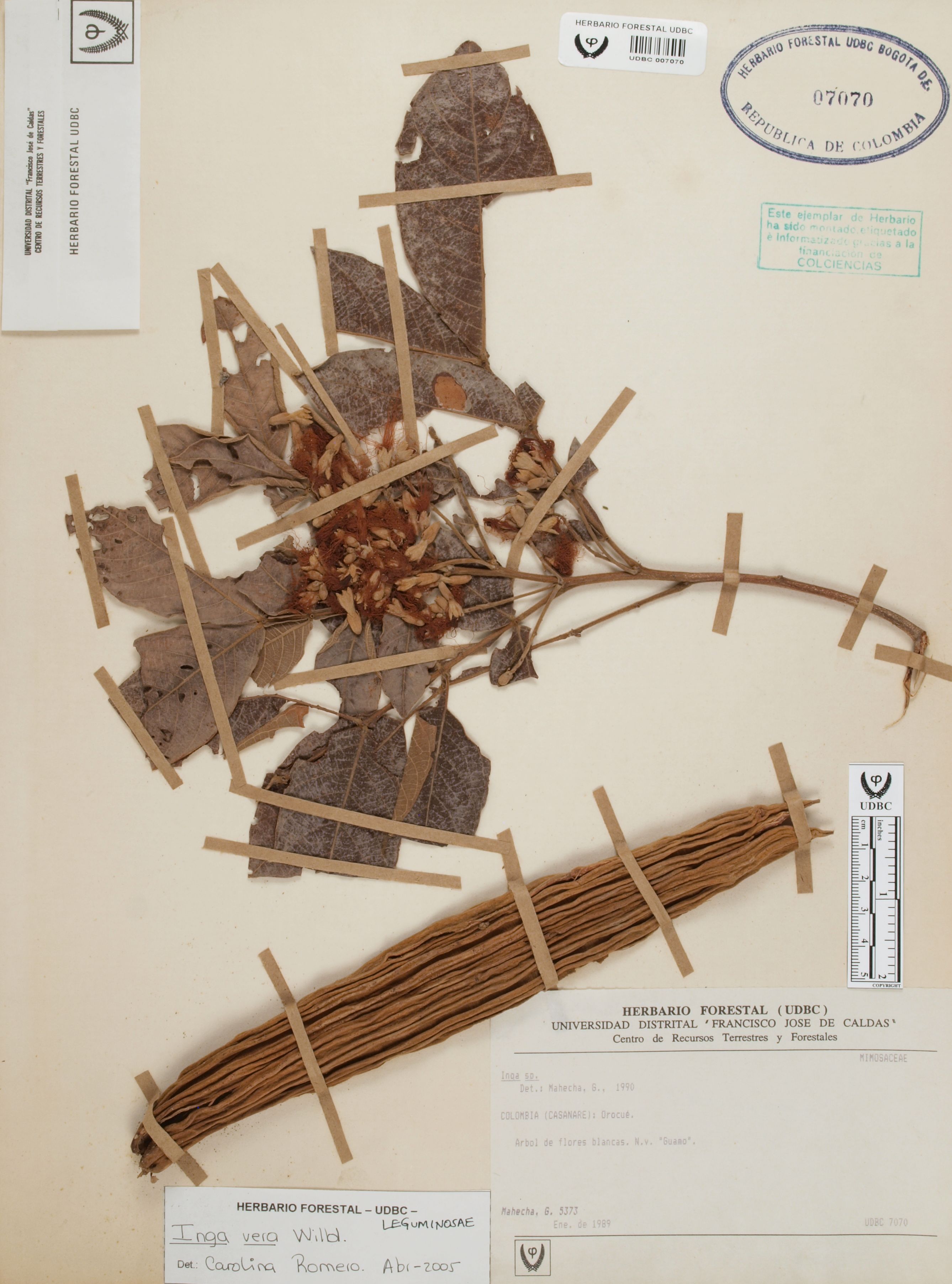 Fotografía del ejemplar Mahecha, G. 5373, determinado como Inga vera en el año 2005