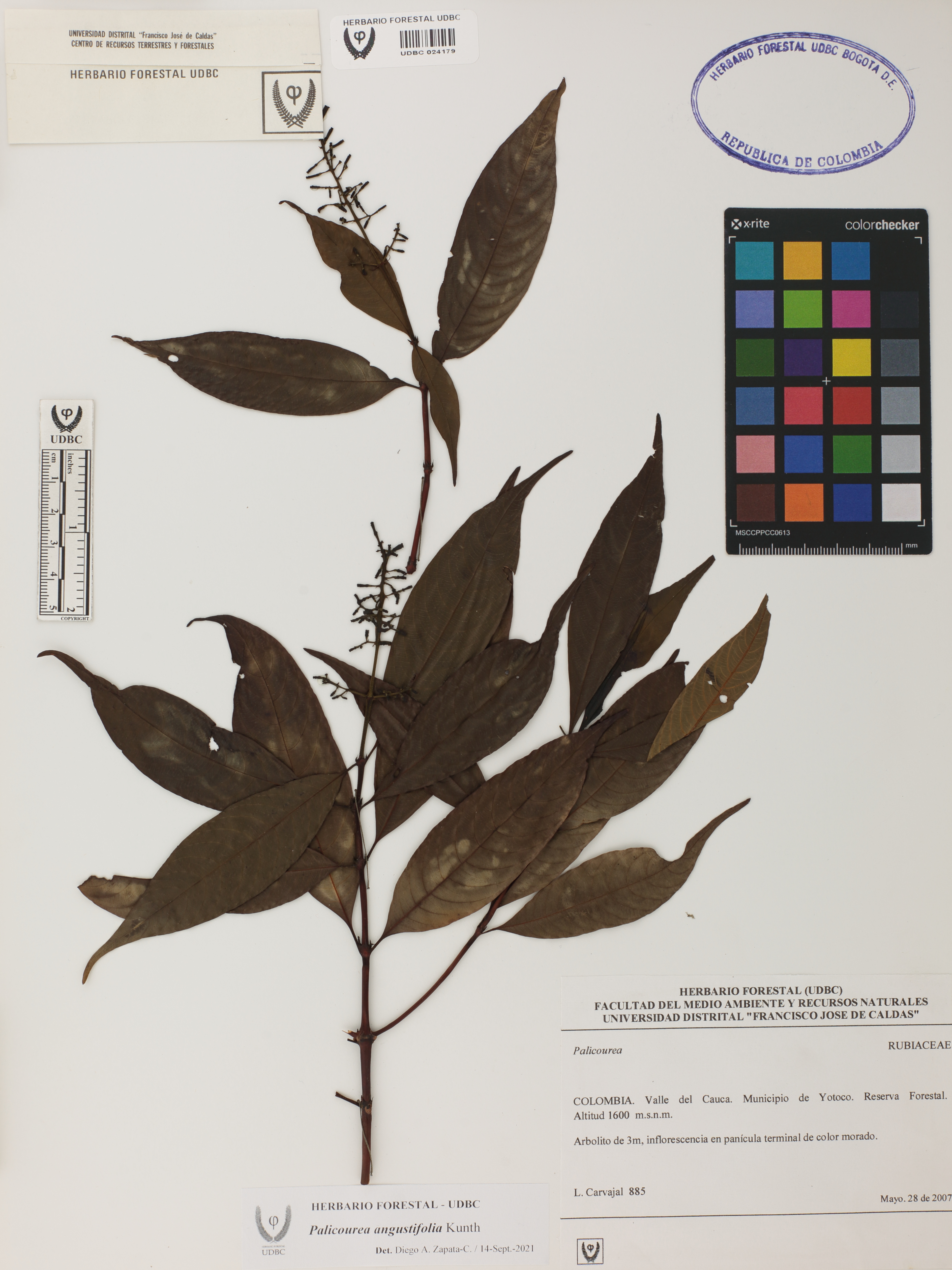 | dc.description | Fotografía del ejemplar Carvajal, L. 885, determinado como Palicourea angustifolia en el año 2021 | |