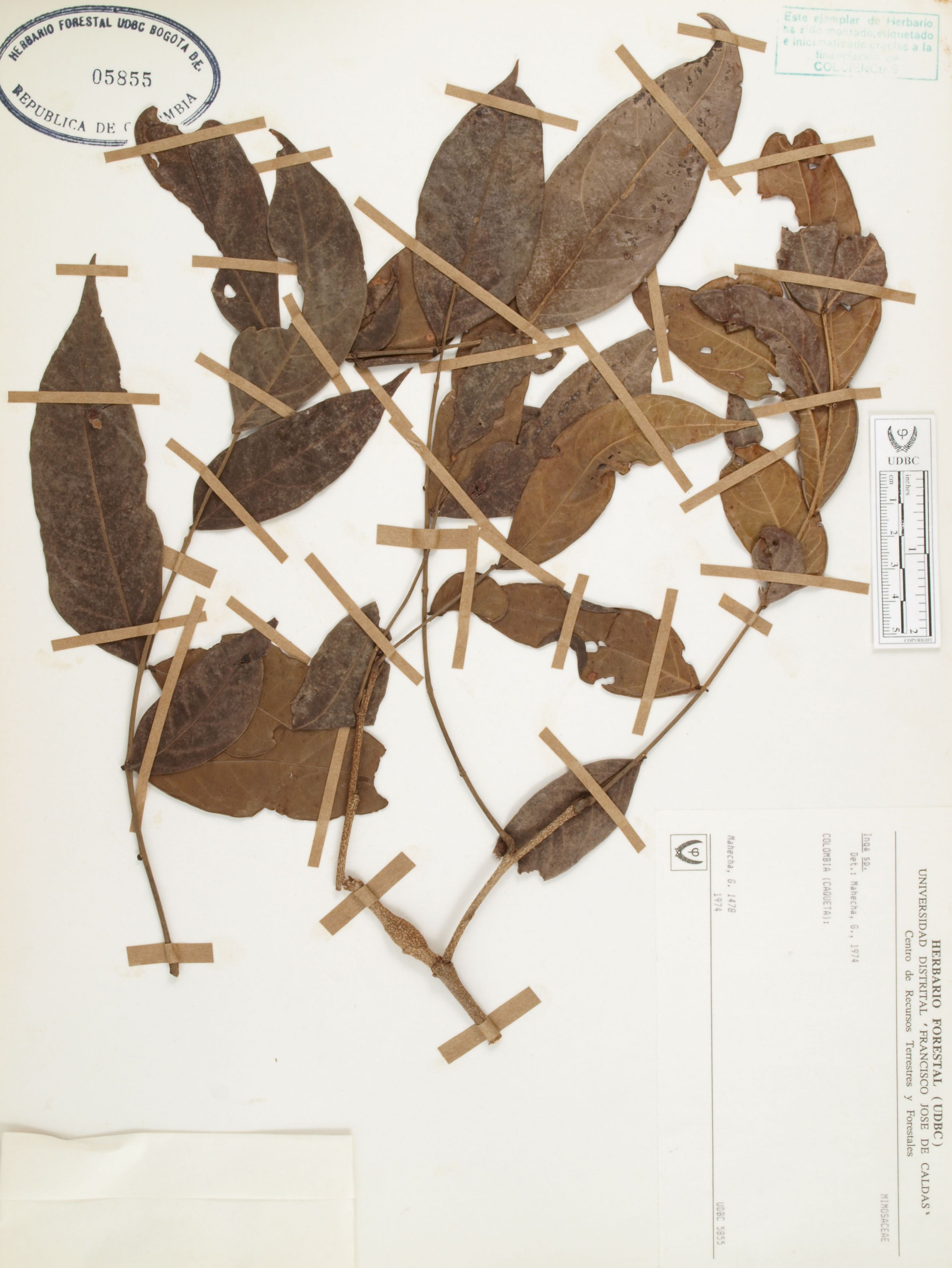 Fotografía del ejemplar Mahecha, G. 1478, determinado como Inga sp. en el año 1974