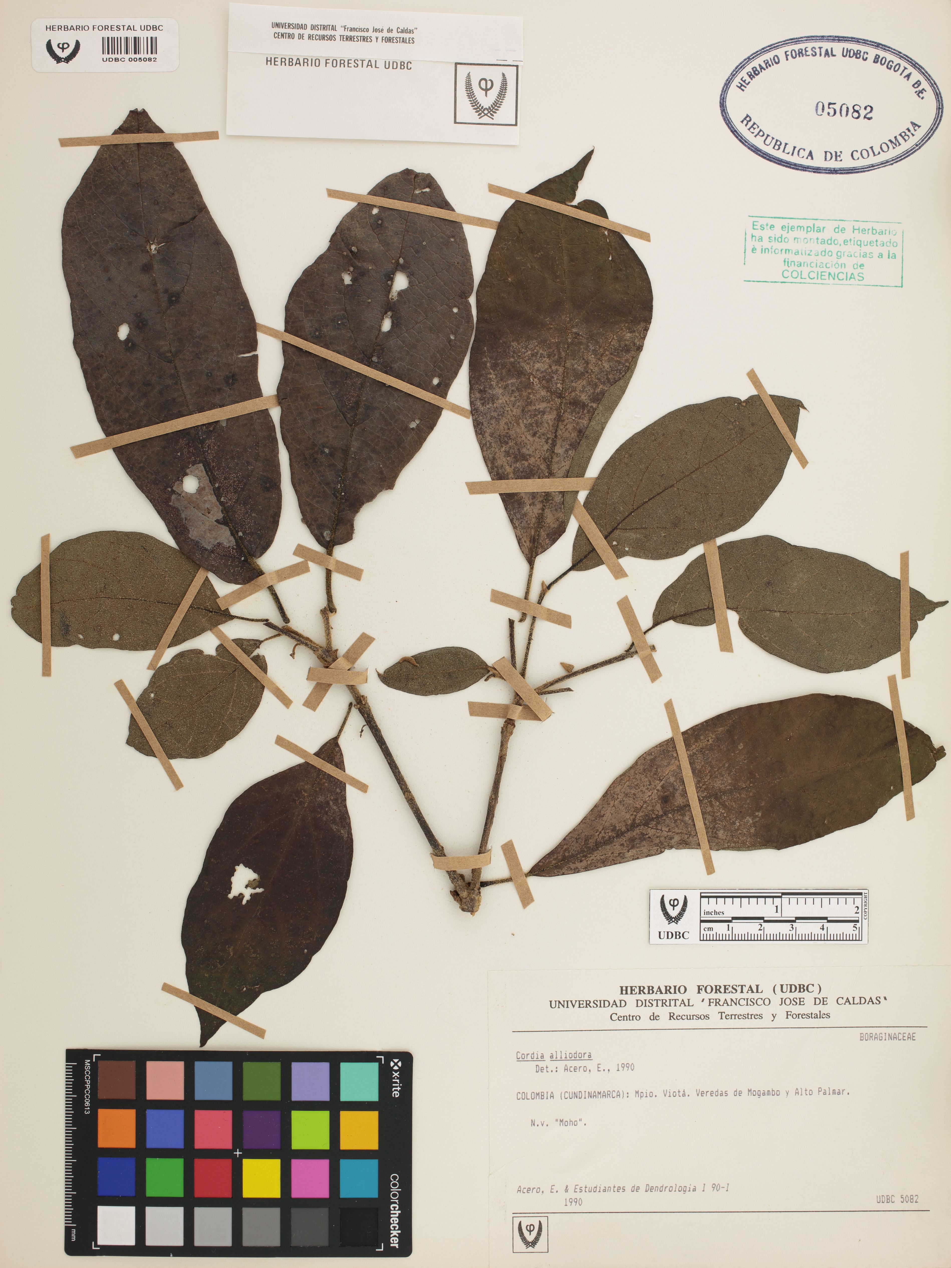 Fotografía del ejemplar Acero, E., determinado como Cordia alliodora en el año 1990