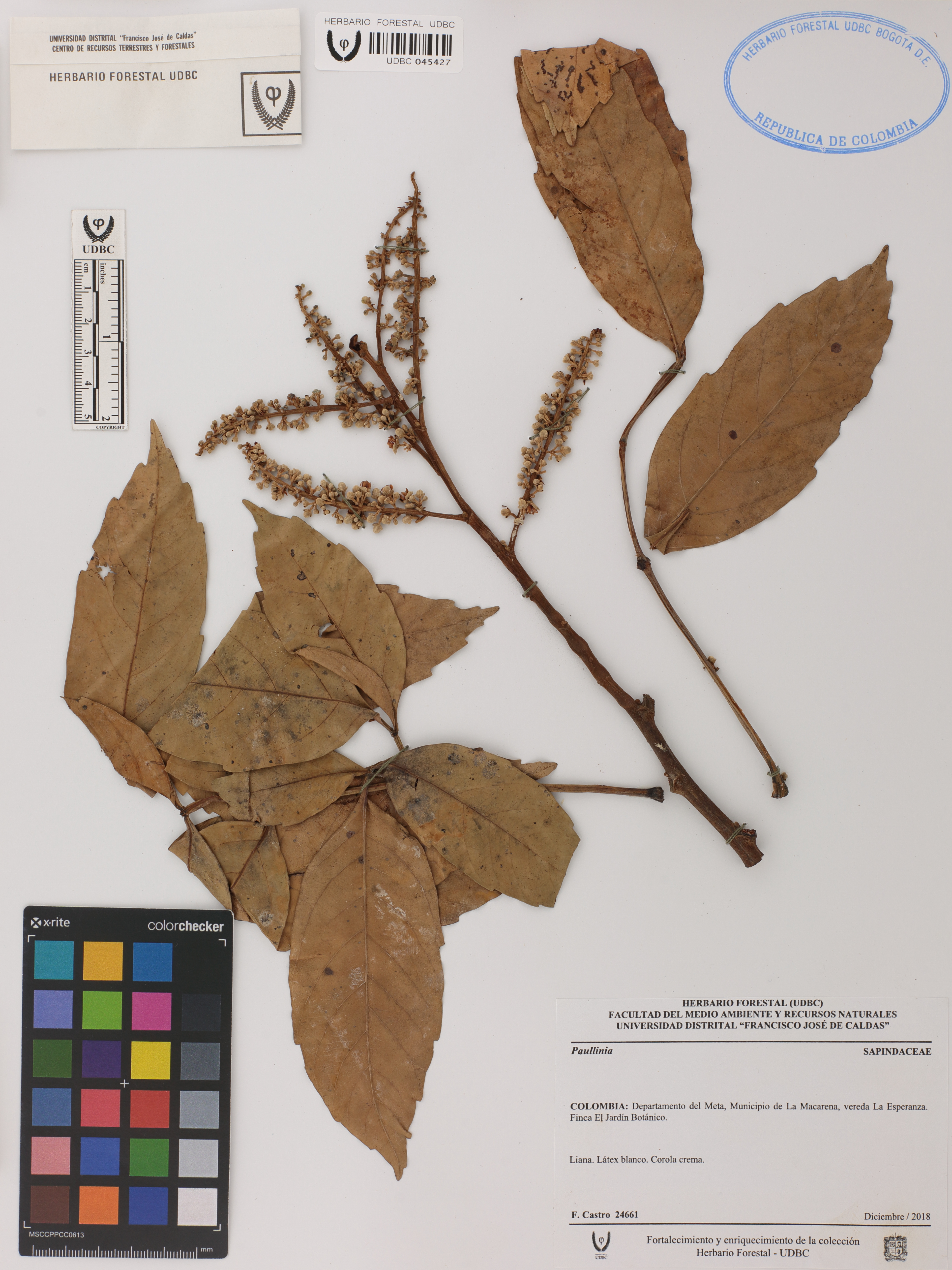 | dc.description | Fotografía del ejemplar Castro, F. 24661, determinado como Paullinia sp. | |