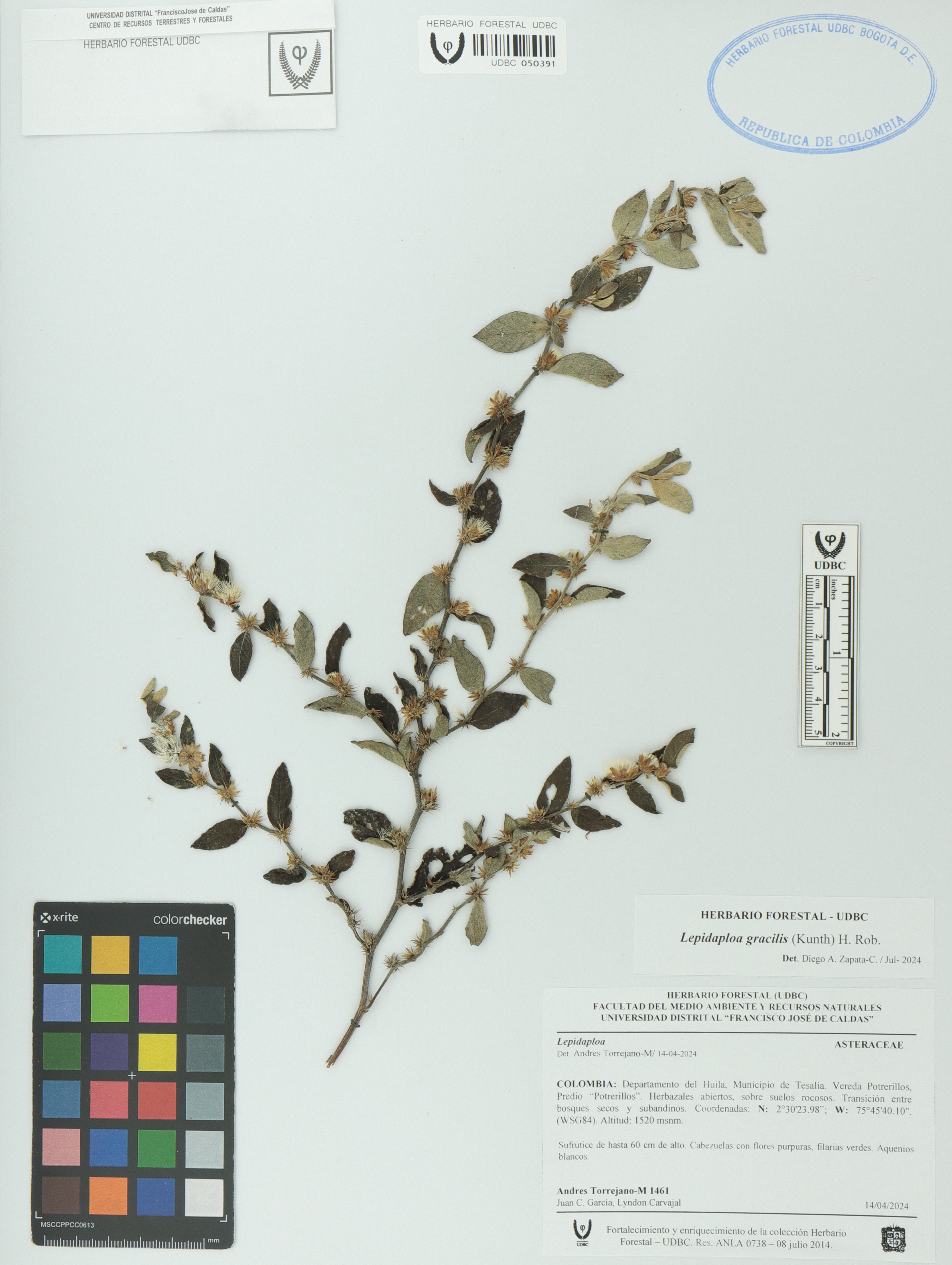 Fotografía del ejemplar Torrejano-M., A. 1461, determinado como Lepidaploa gracilis en el año 2024