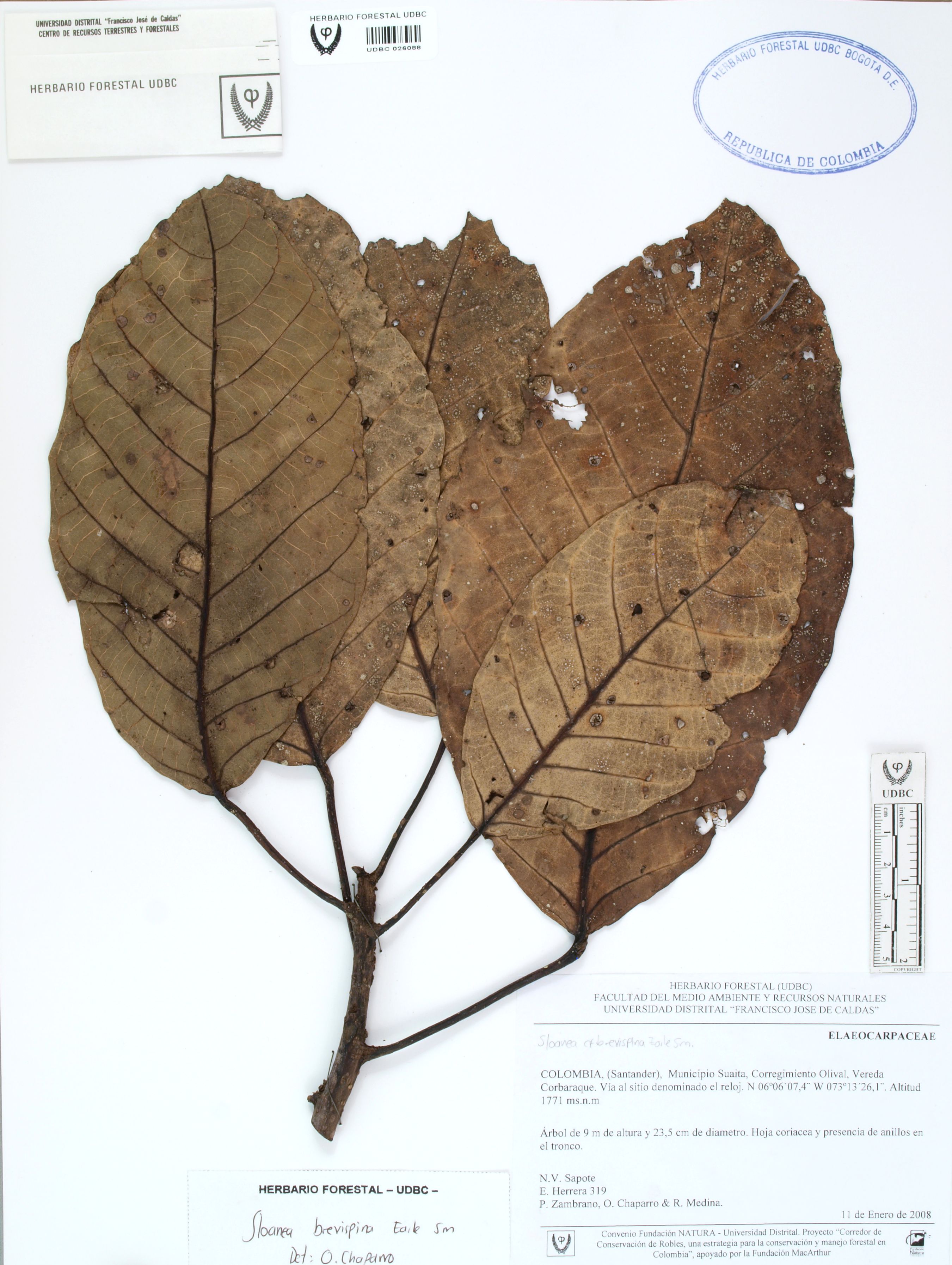 Fotografía del ejemplar Herrera, E. 319, determinado como Sloanea brevispina
