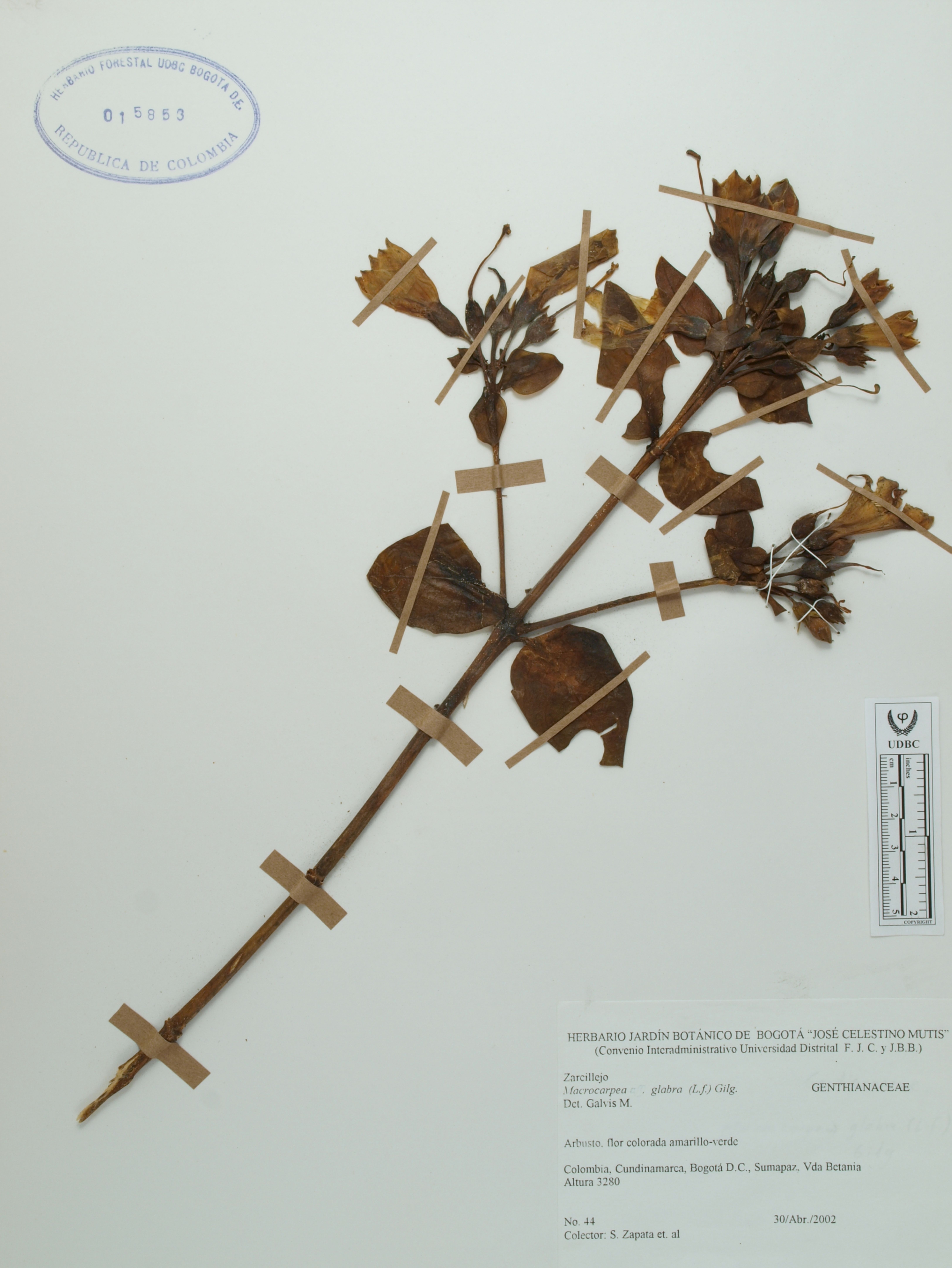 Fotografía del ejemplar Zapata, S. 44, determinado como Macrocarpaea glabra