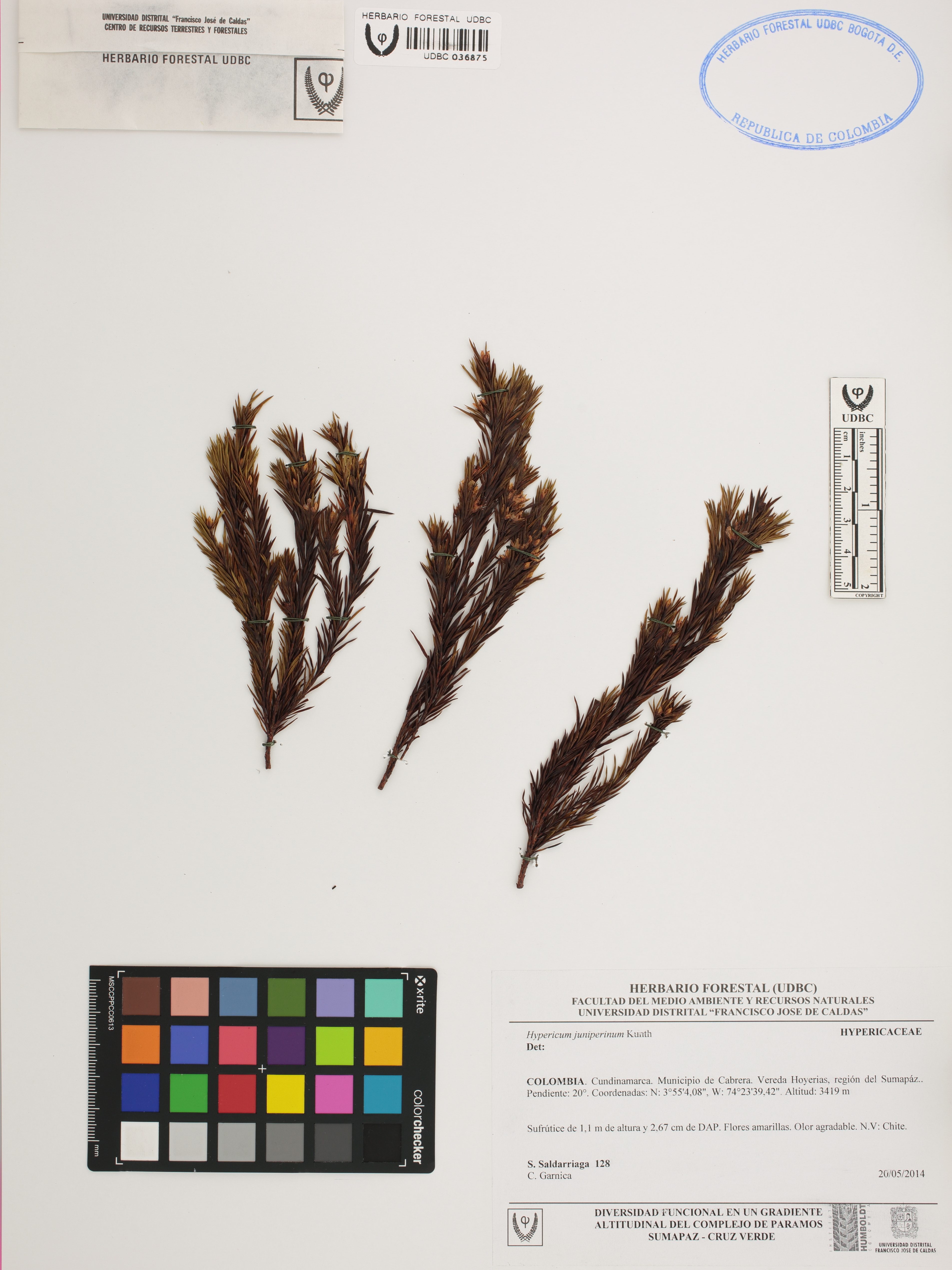 Fotografía del ejemplar Saldarriaga, S. 128, determinado como Hypericum juniperinum