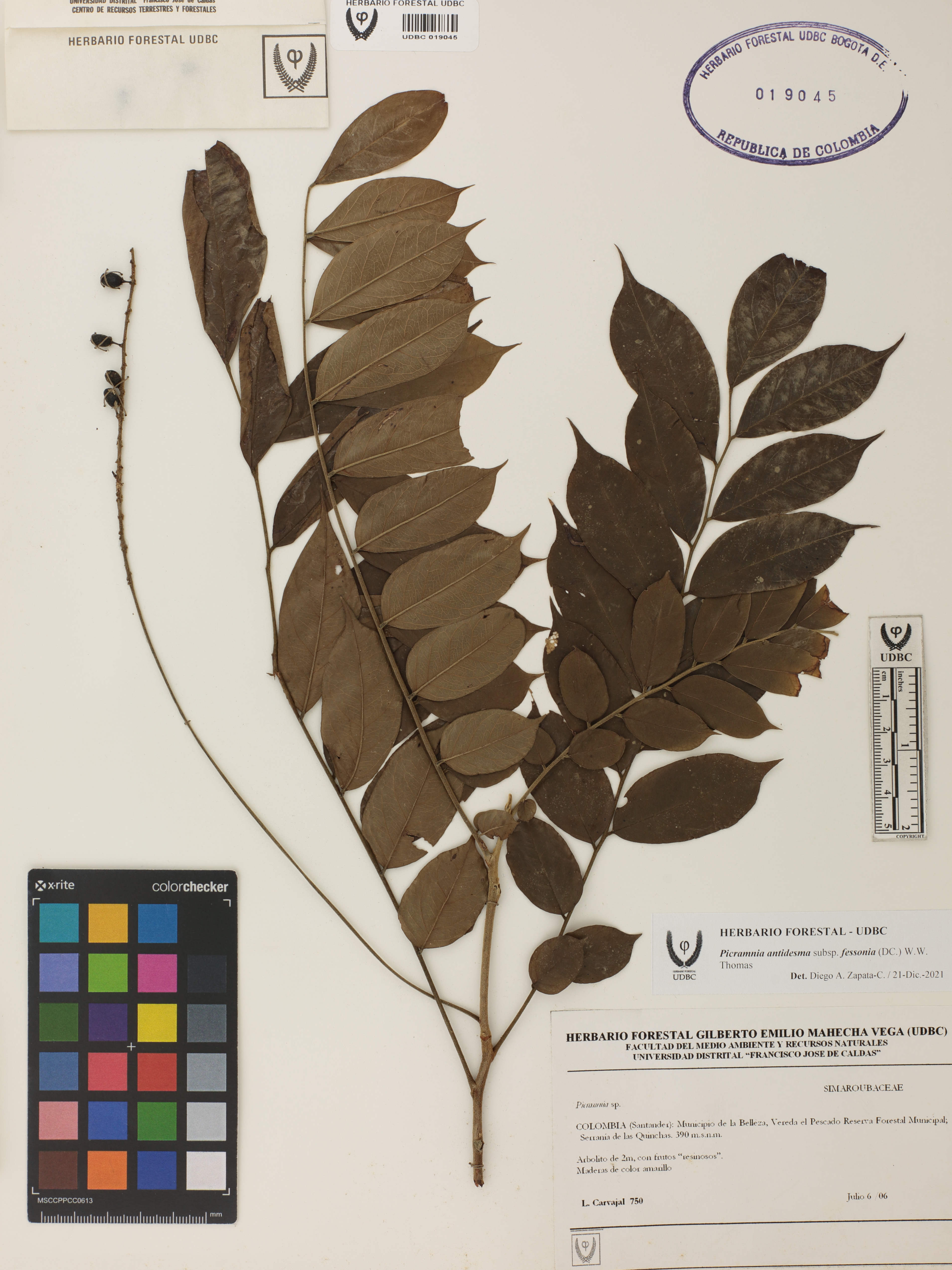 Fotografía del ejemplar Carvajal, L. 750, determinado como Picramnia antidesma subsp. fessonia en el año 2021