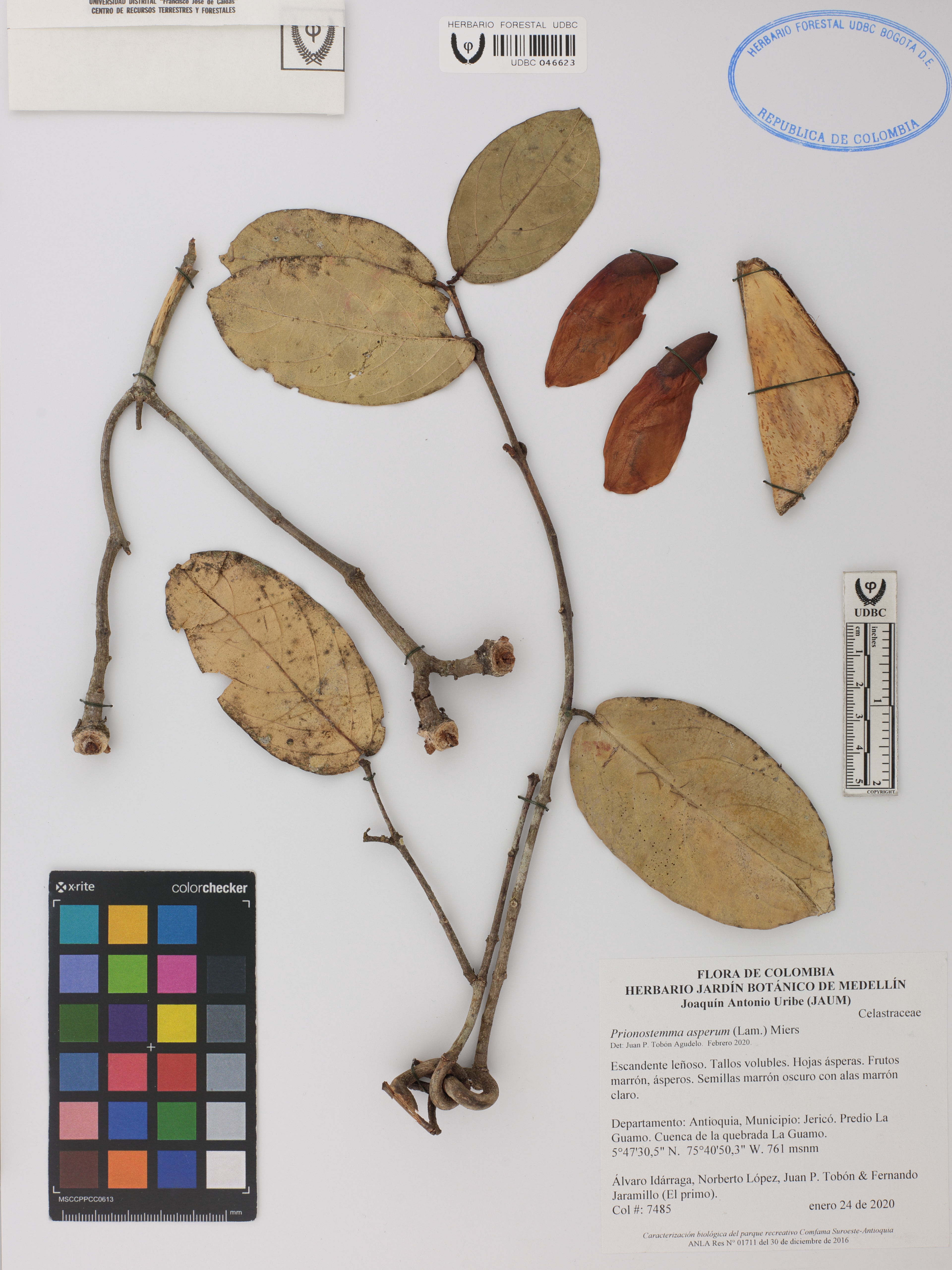 Fotografía del ejemplar Idárraga, Á. 7485, determinado como Prionostemma asperum en el año 2020