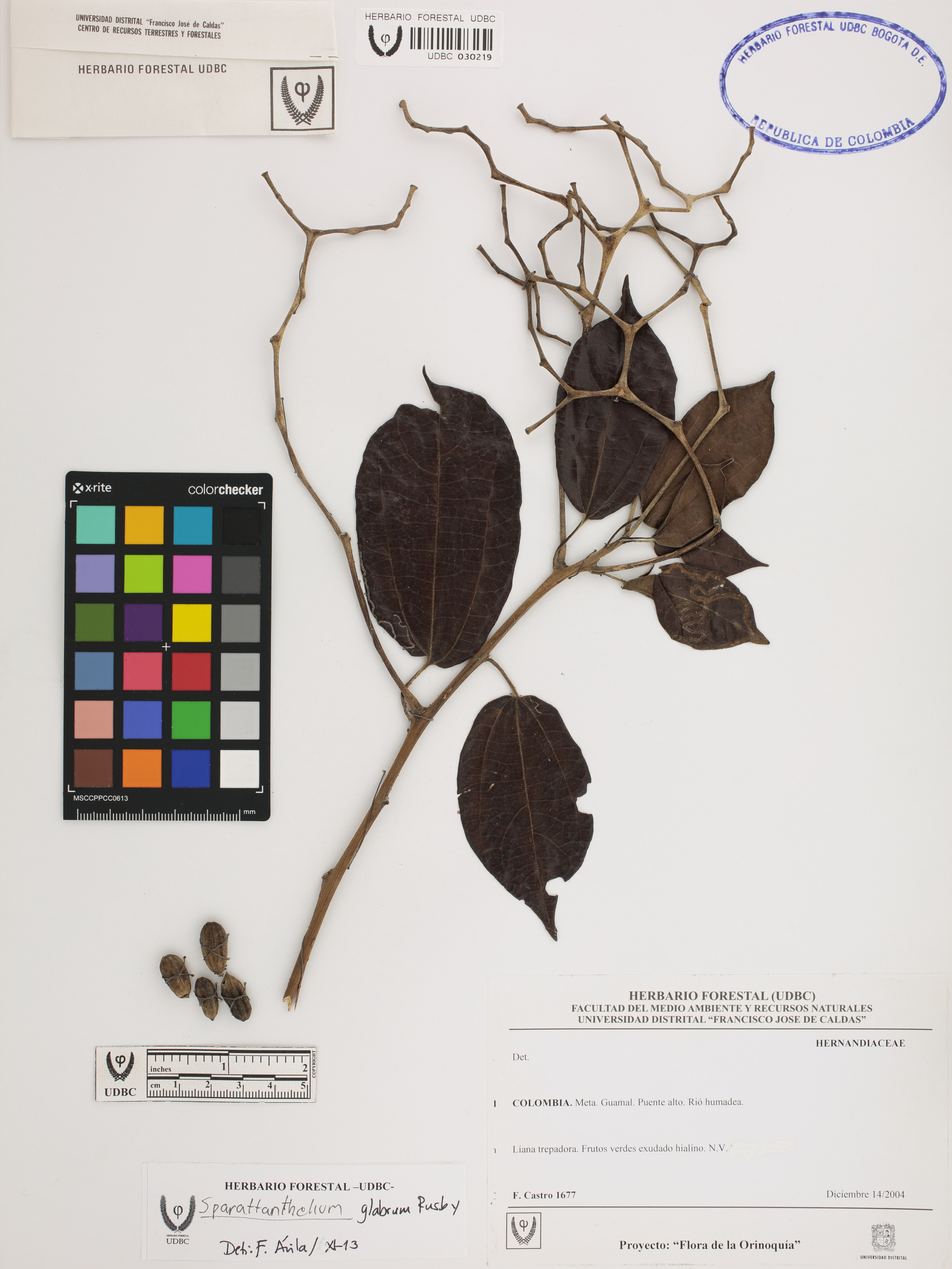 Fotografía del ejemplar Castro, F. 1677, determinado como Sparattanthelium glabrum en el año 2013